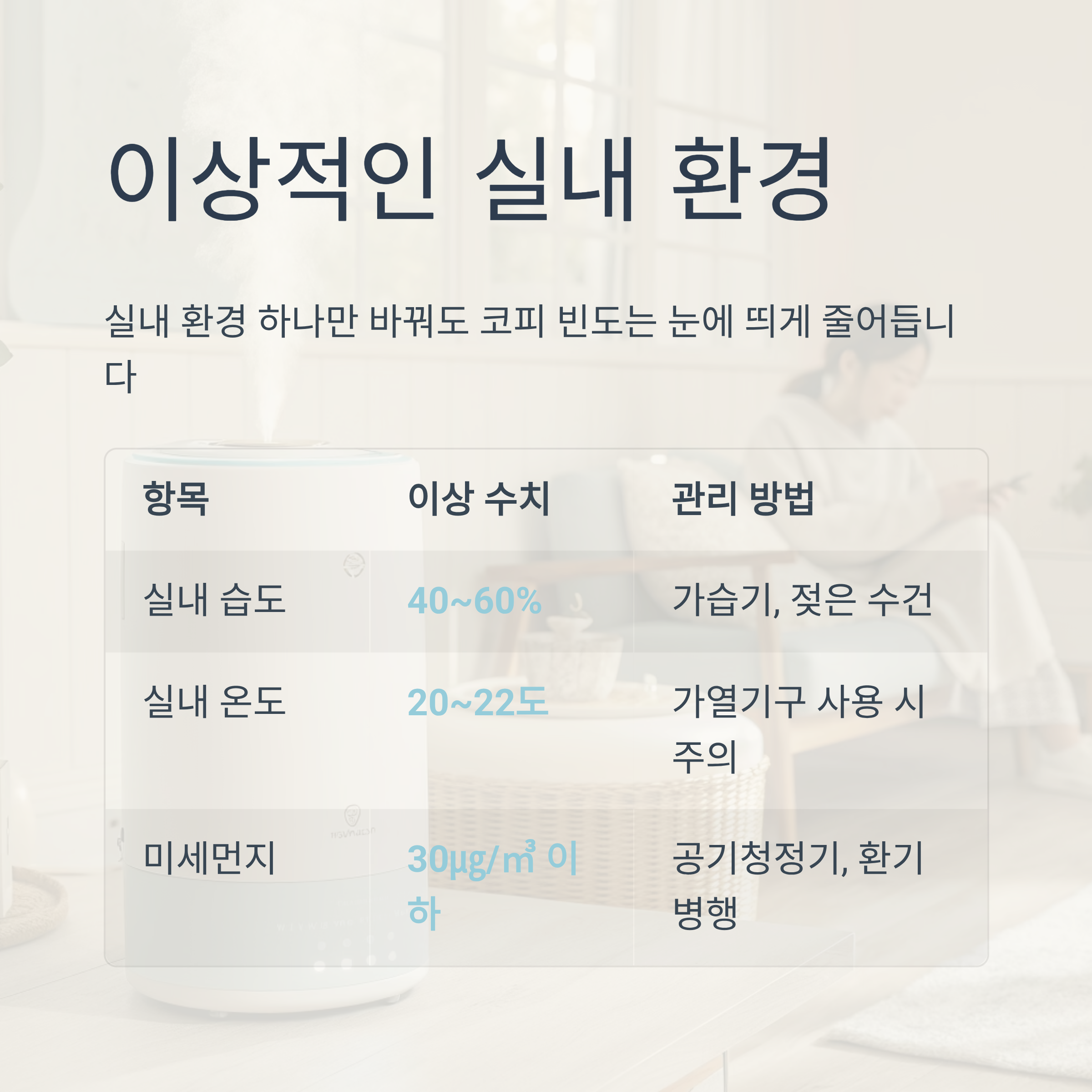 작은 변화지만, 환경 하나만 바꿔도 코피 빈도는 눈에 띄게 줄어들 수 있어요.