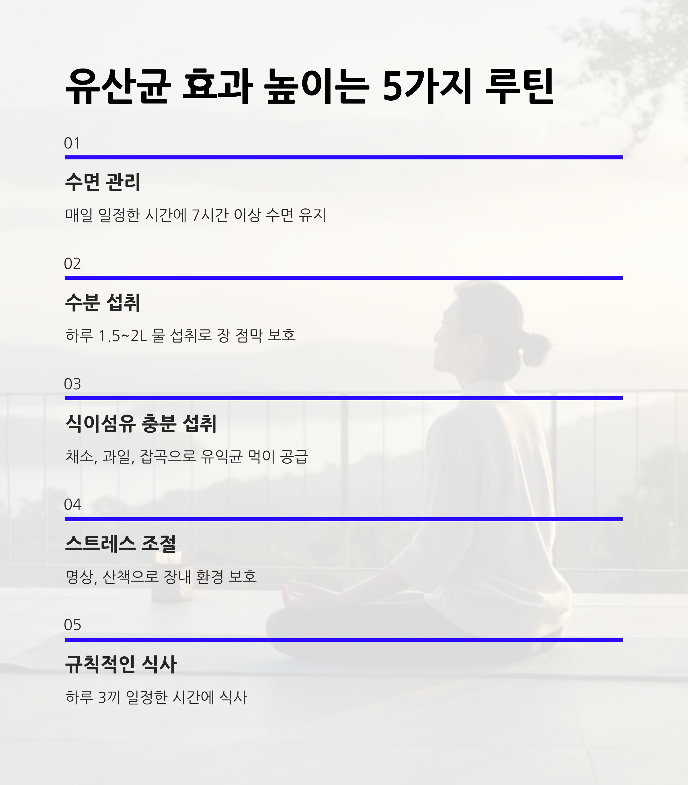 유산균의 효과를 제대로 누리려면, 생활 습관도 함께 관리해야 합니다.