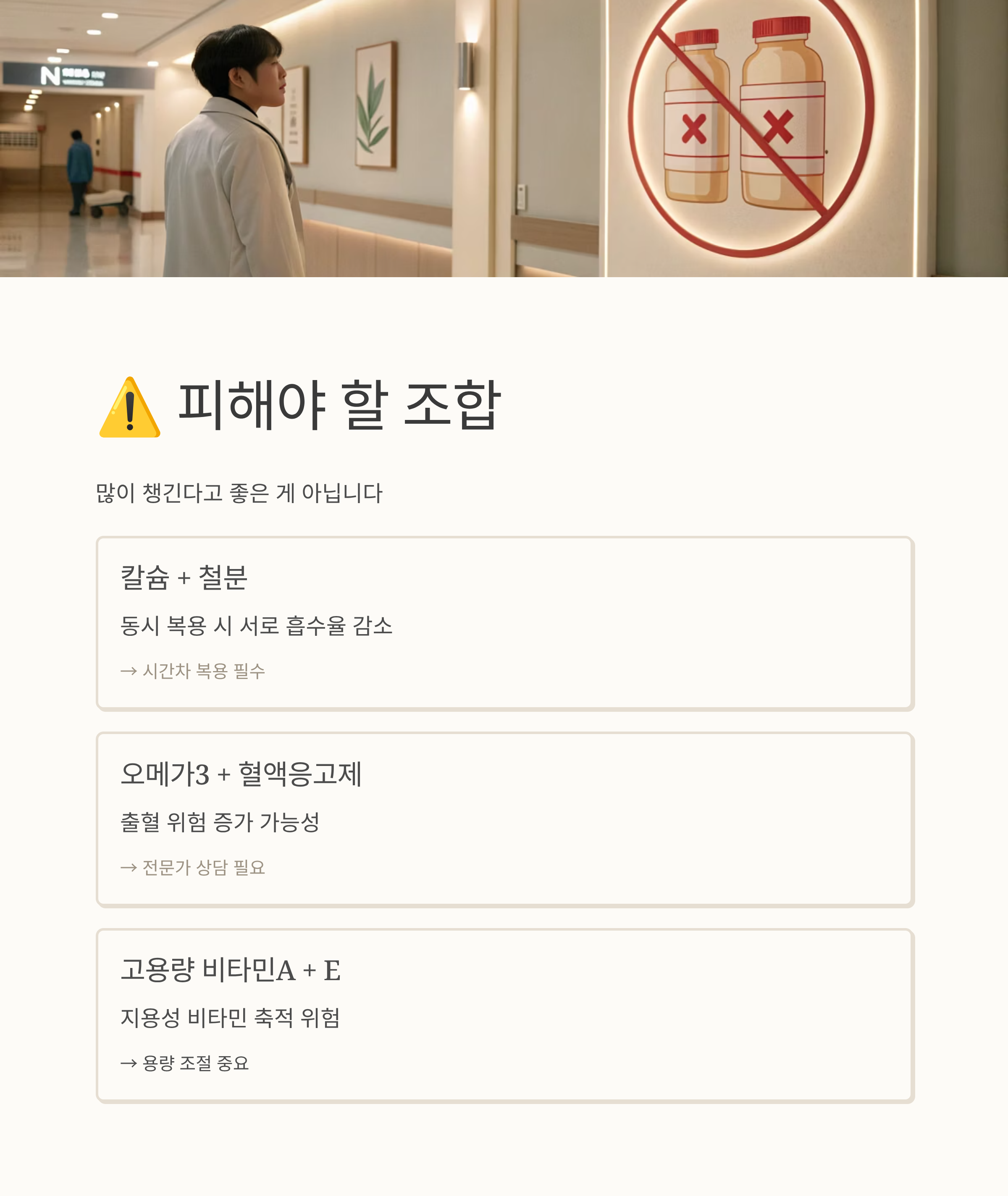 이런 조합은 꼭 시간차를 두고 섭취하거나 전문가와 상담이 필요합니다.