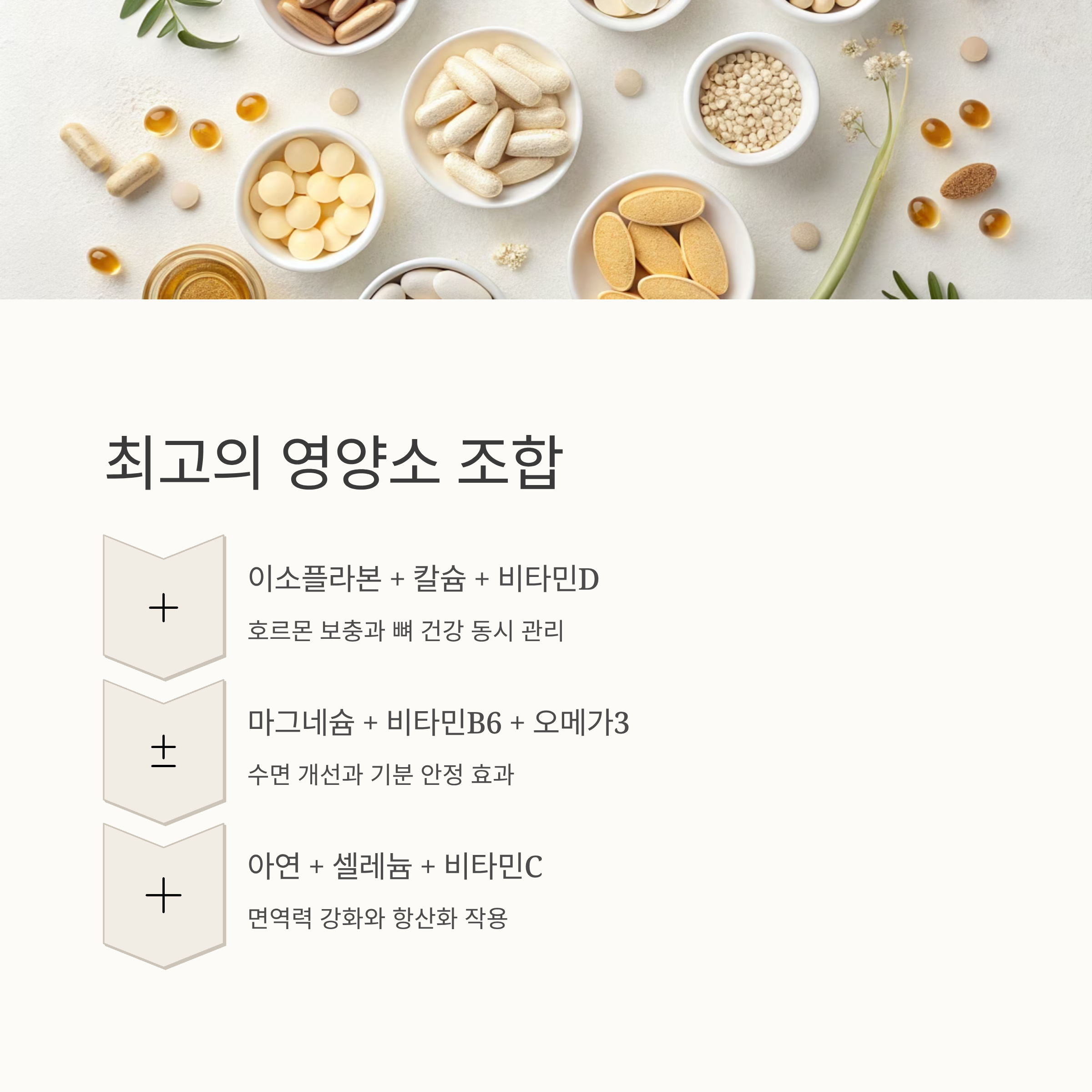 단독보다 조합, 이것이 갱년기 영양제의 핵심 공식입니다.