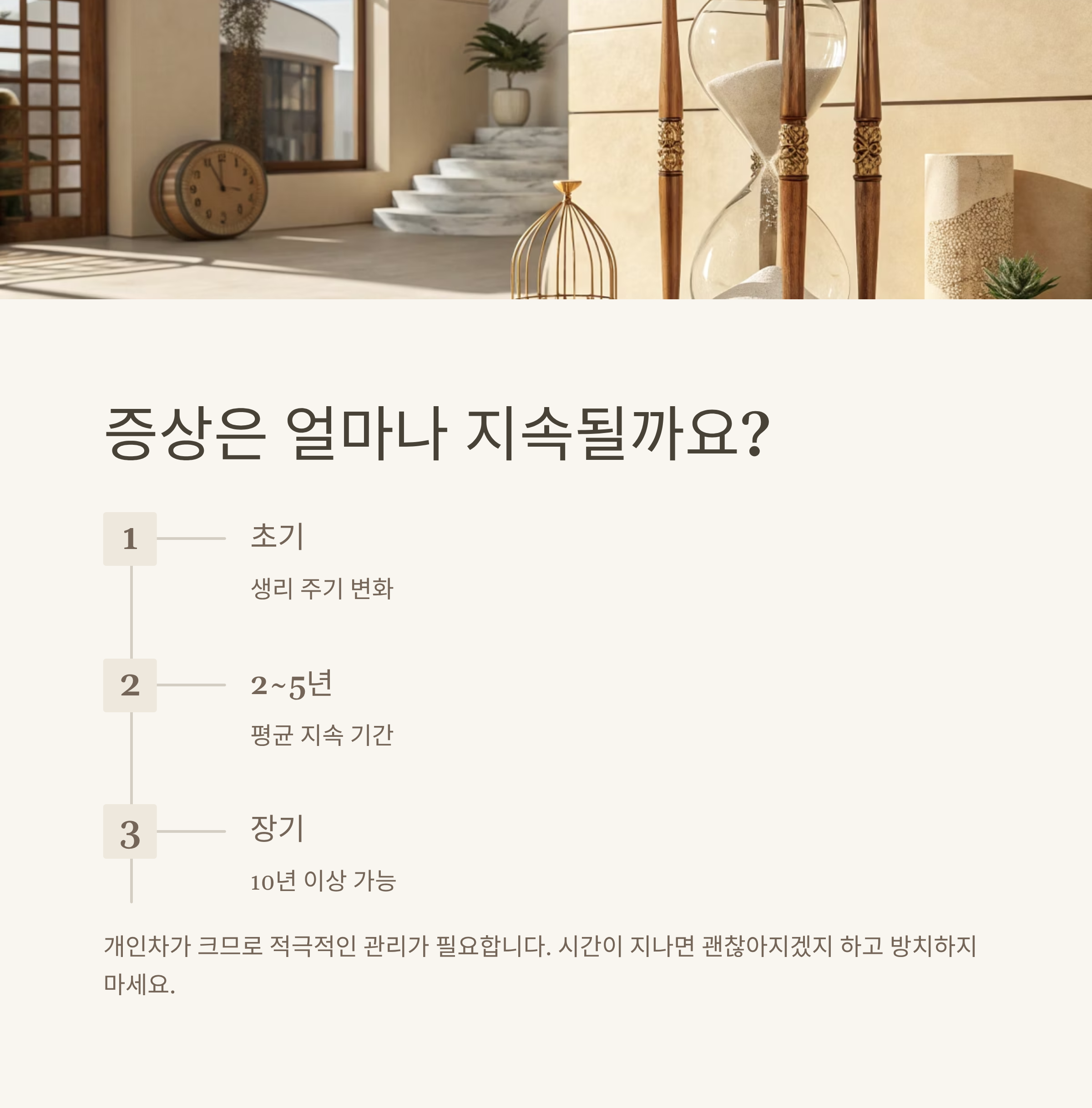 하지만 사람에 따라 10년 이상 지속되는 경우도 있어요.