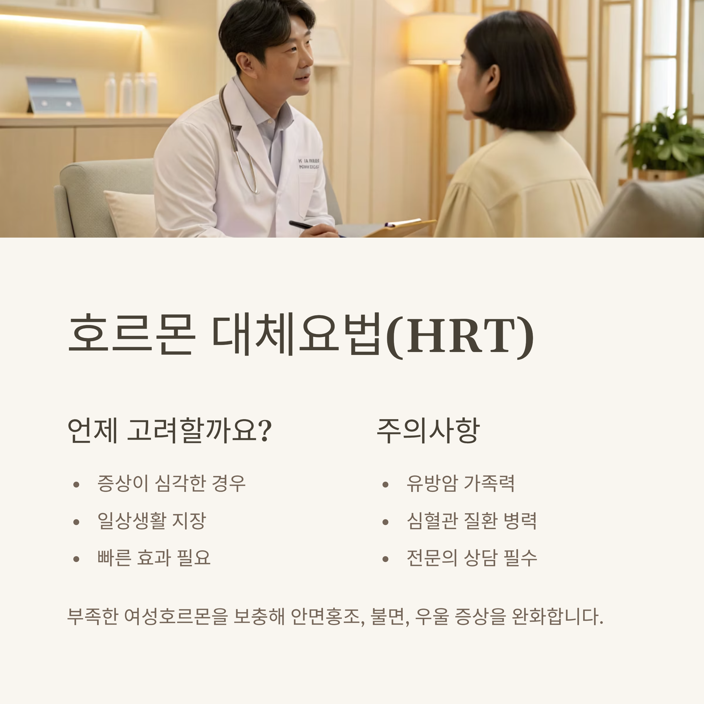 **호르몬 대체요법(HRT)**을 고려할 수 있습니다.