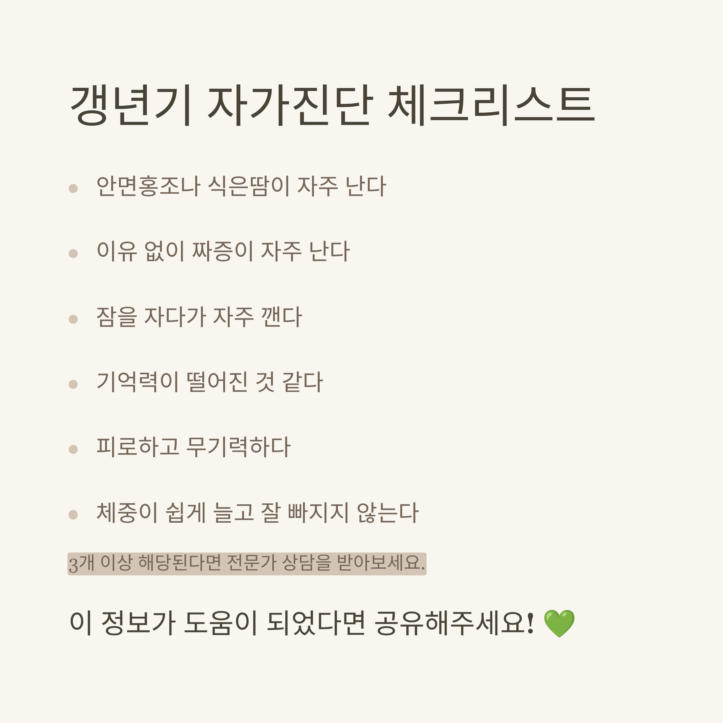 갱년기 자가진단 체크리스트