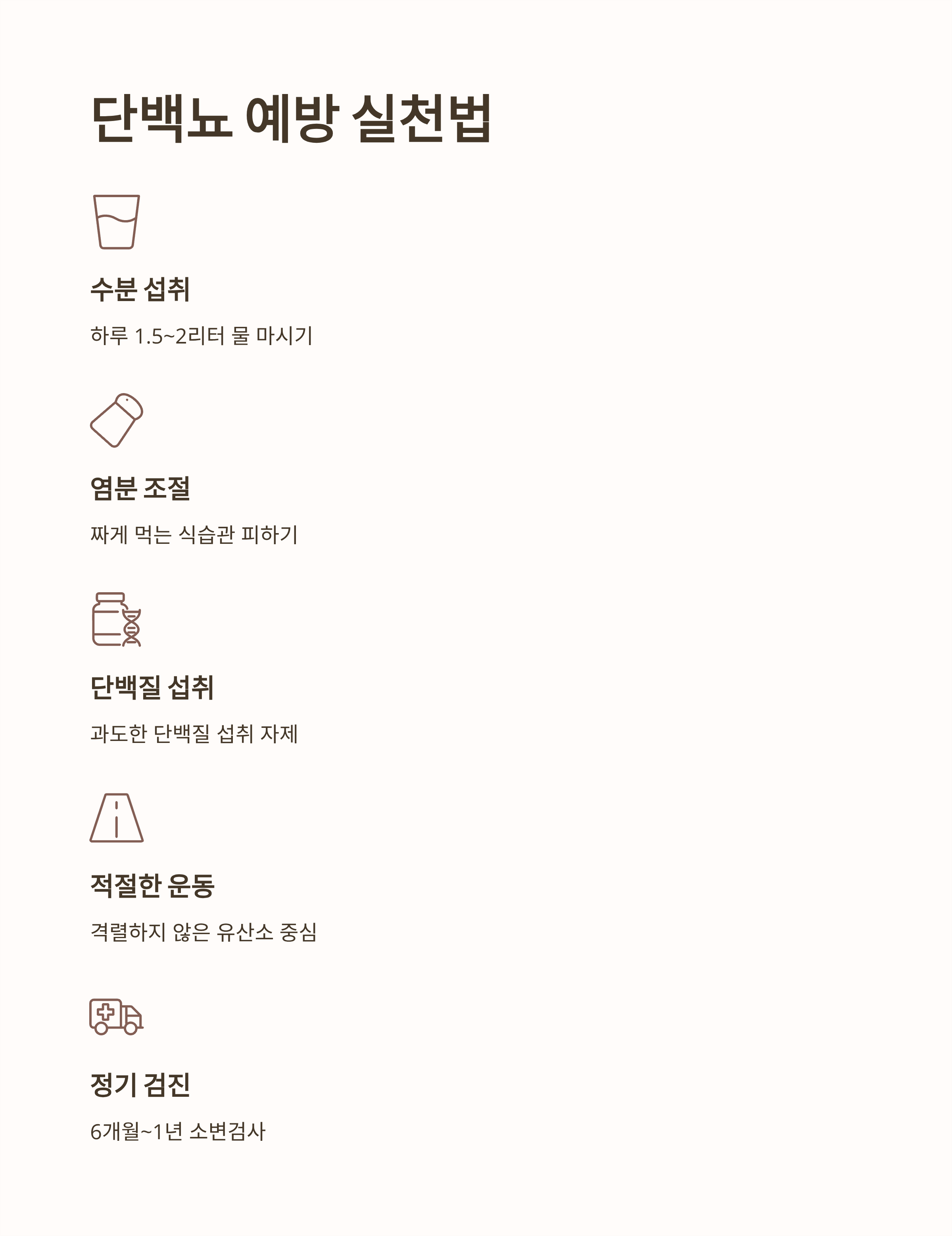 | 정기검진 | 6개월~1년에 한 번 소변검사 |