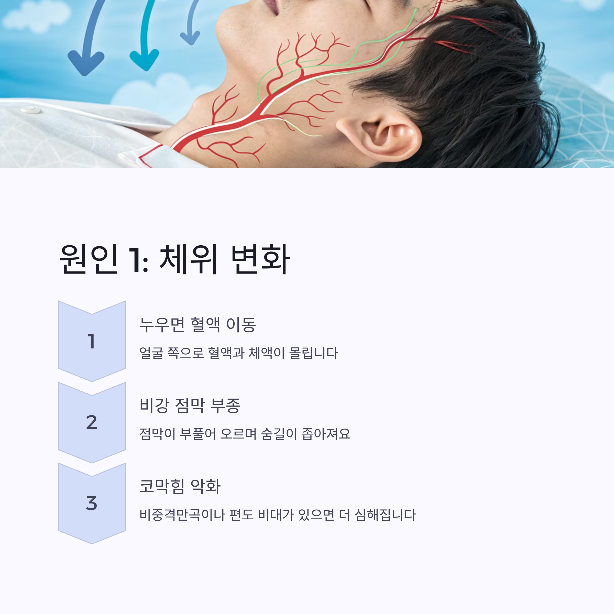 1. 체위 변화, 누우면 코막힘이 심해지는 이유