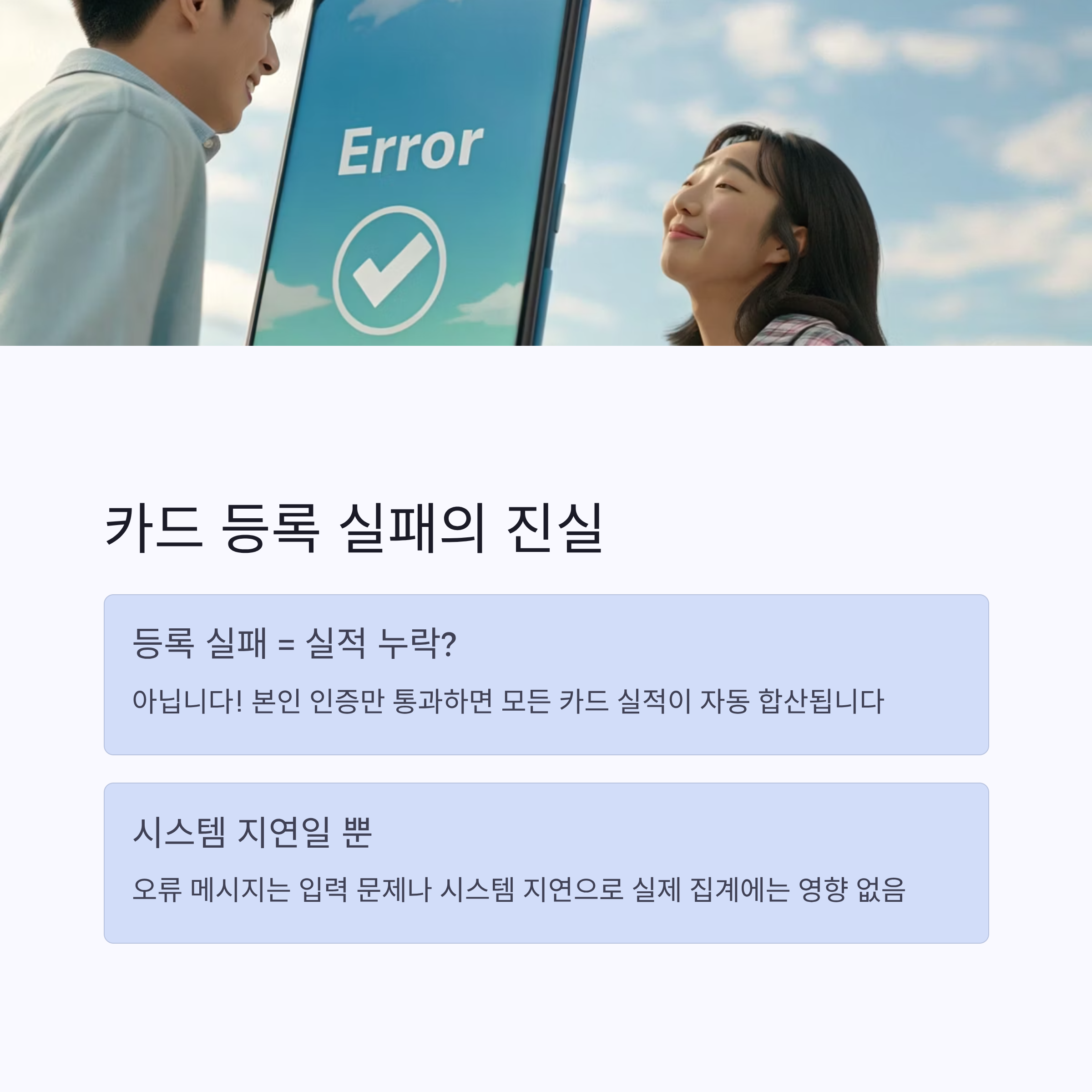 | 카드 등록 실패 메시지 | 무시해도 실적 합산에는 문제 없음 |