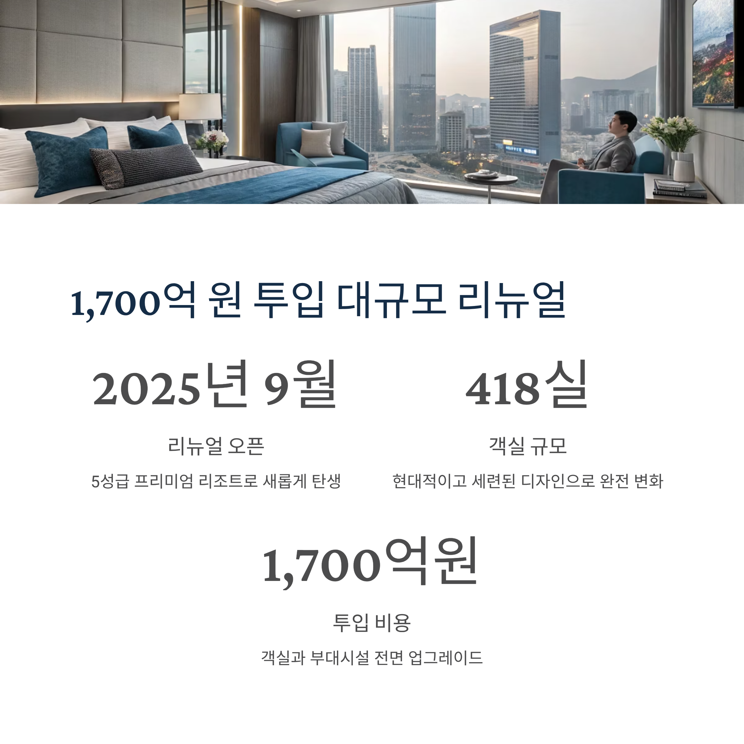 | 규모 | 총 418실, 5성급 프리미엄 리조트 |