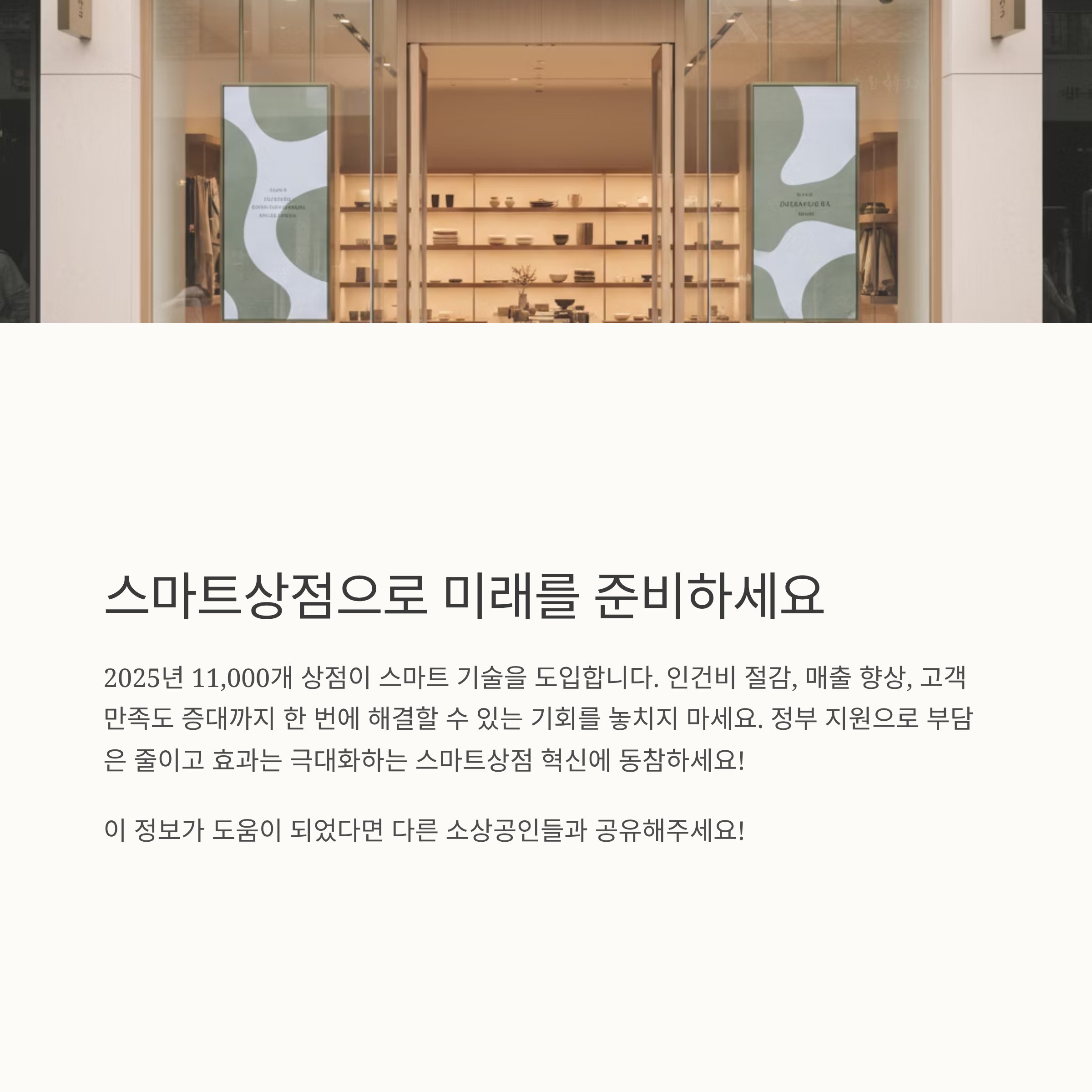단순 자동화가 아닌, 실제 매출과 운영 효율에 영향을 주는 ‘스마트 기술’을 점포에 도입할 수 있도록 돕는 정책이에요.