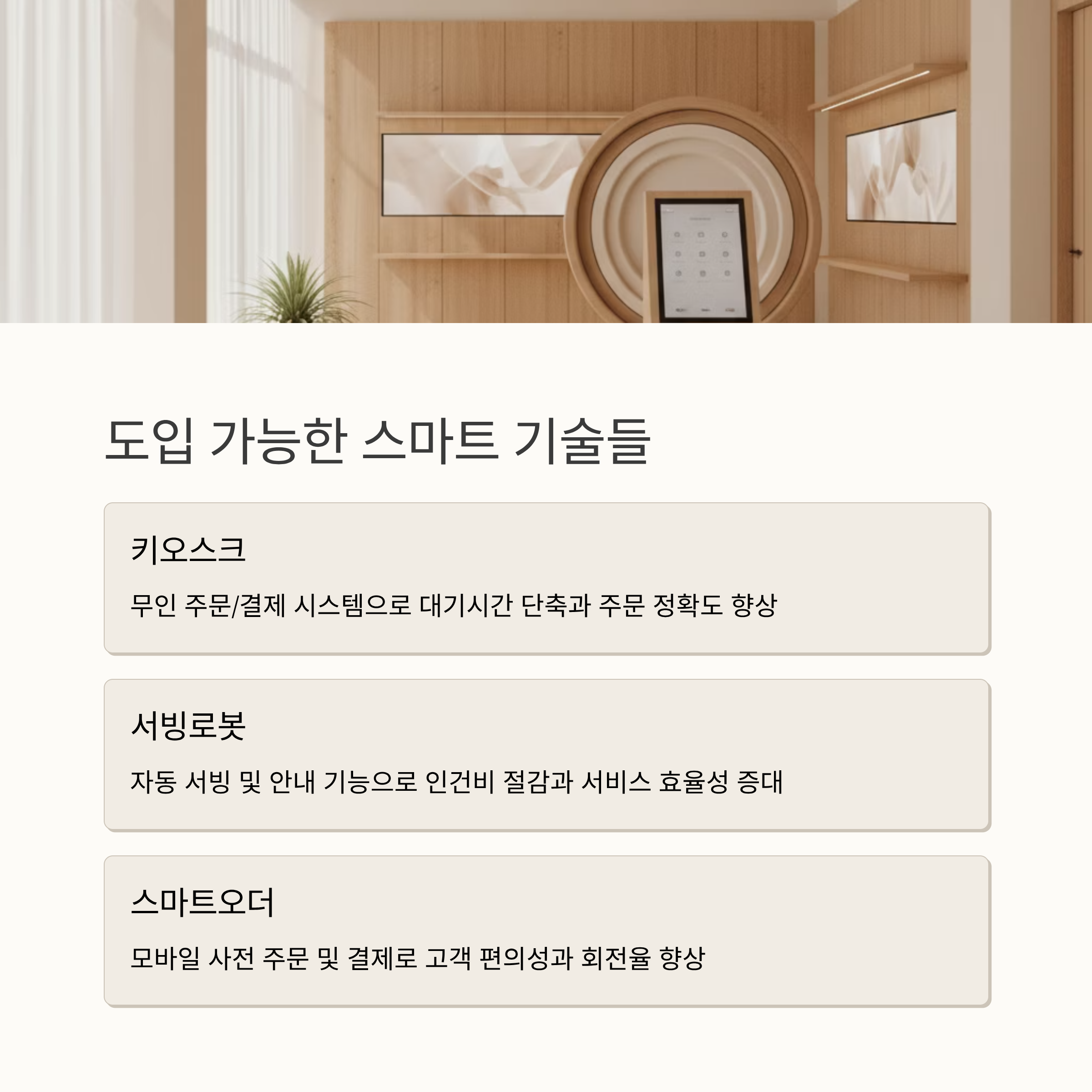 키오스크, 서빙로봇, 스마트오더, 자동재고관리 시스템 등