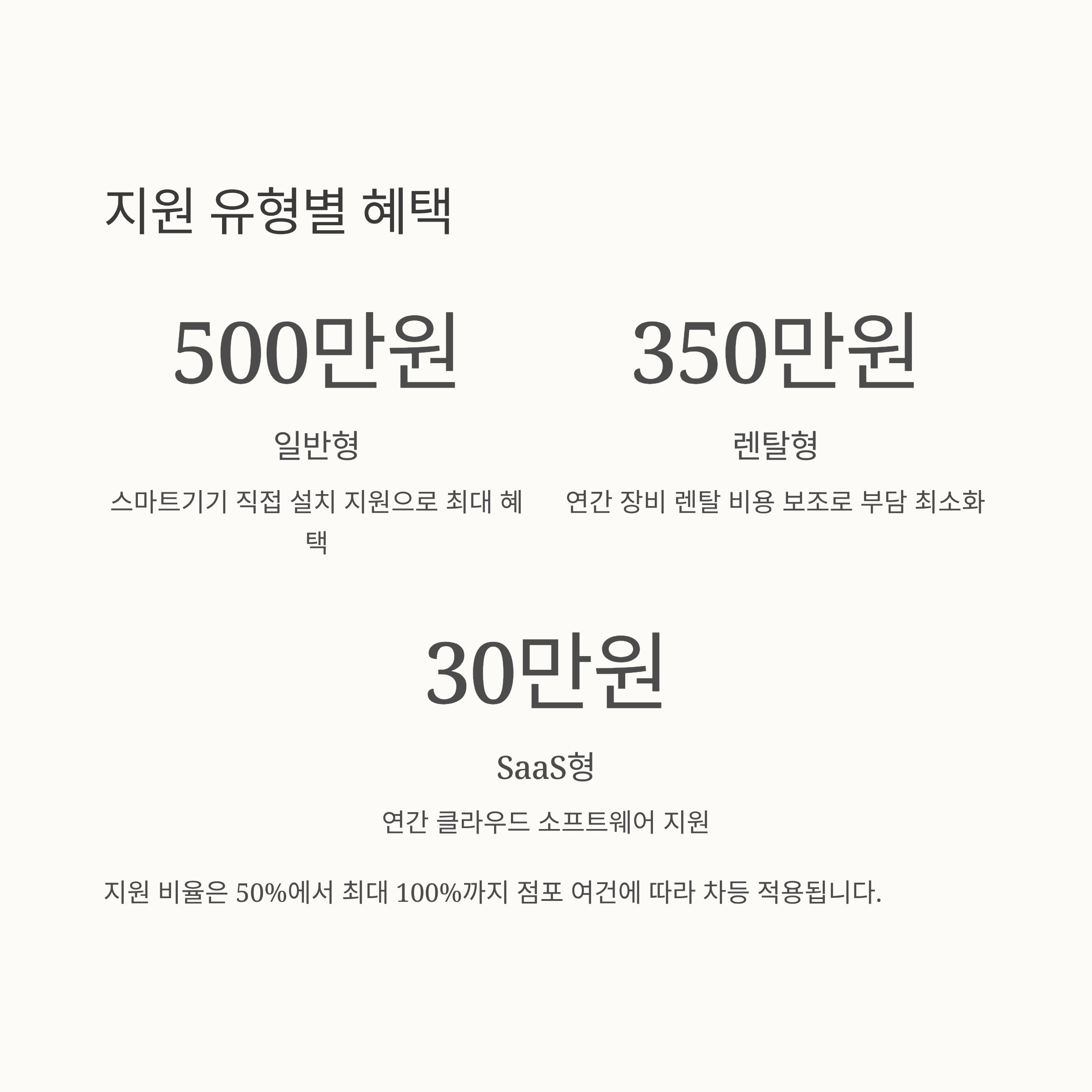 | 렌탈형 | 최대 연 350만 원 | 장비 렌탈 비용 보조 |