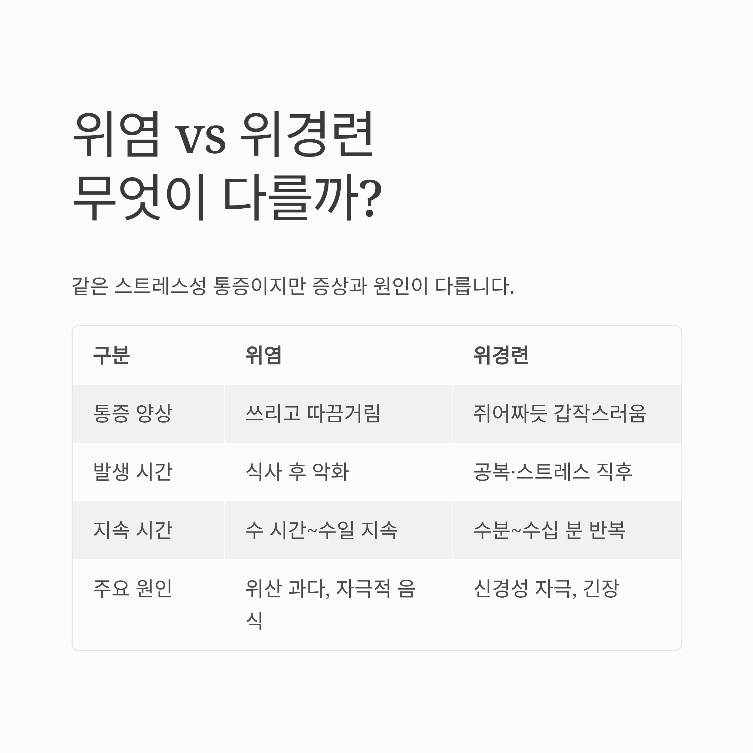 2. 스트레스로 생긴 통증, 위염과 위경련 차이점은?