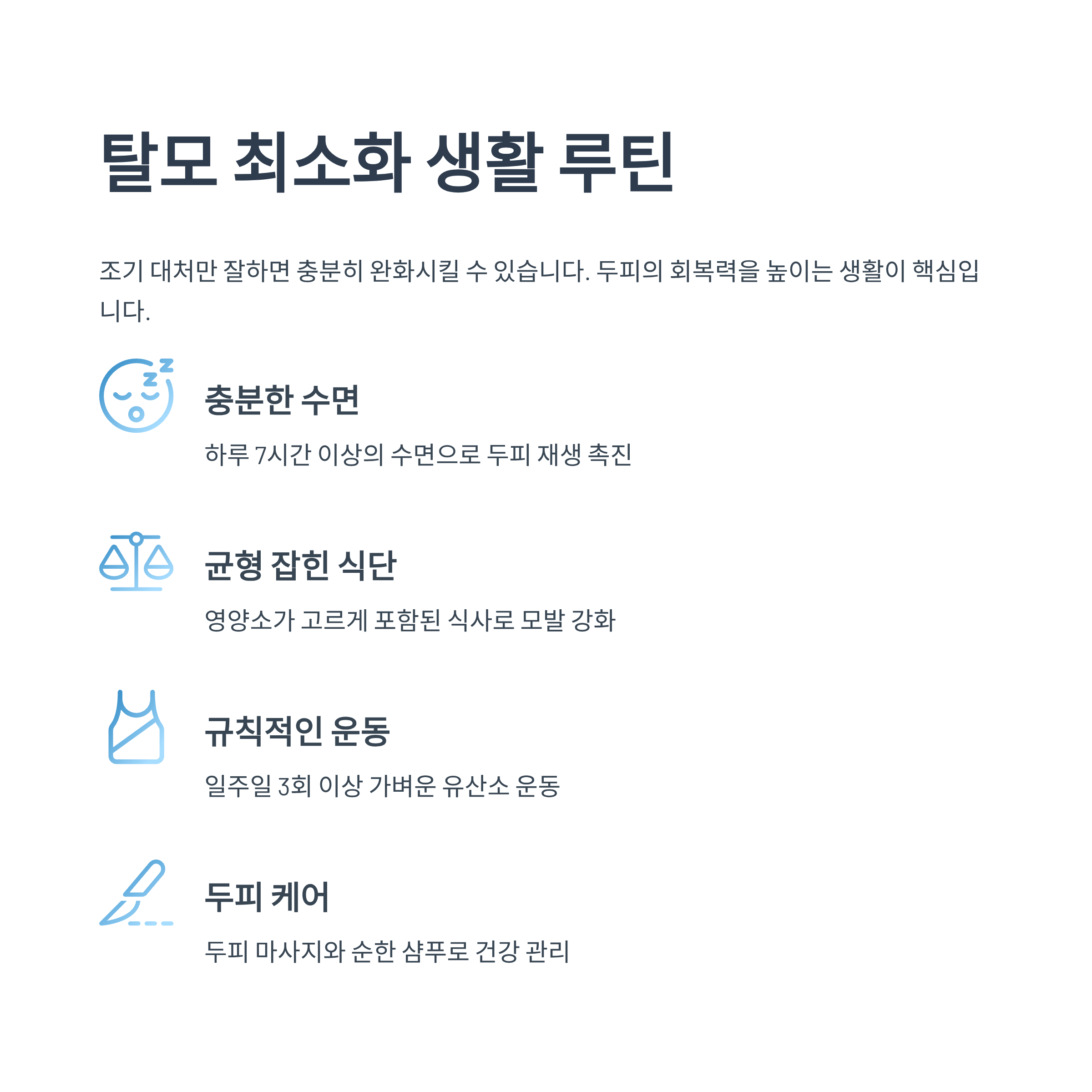 가장 중요한 건 ‘두피의 회복력을 높이는 생활’입니다.