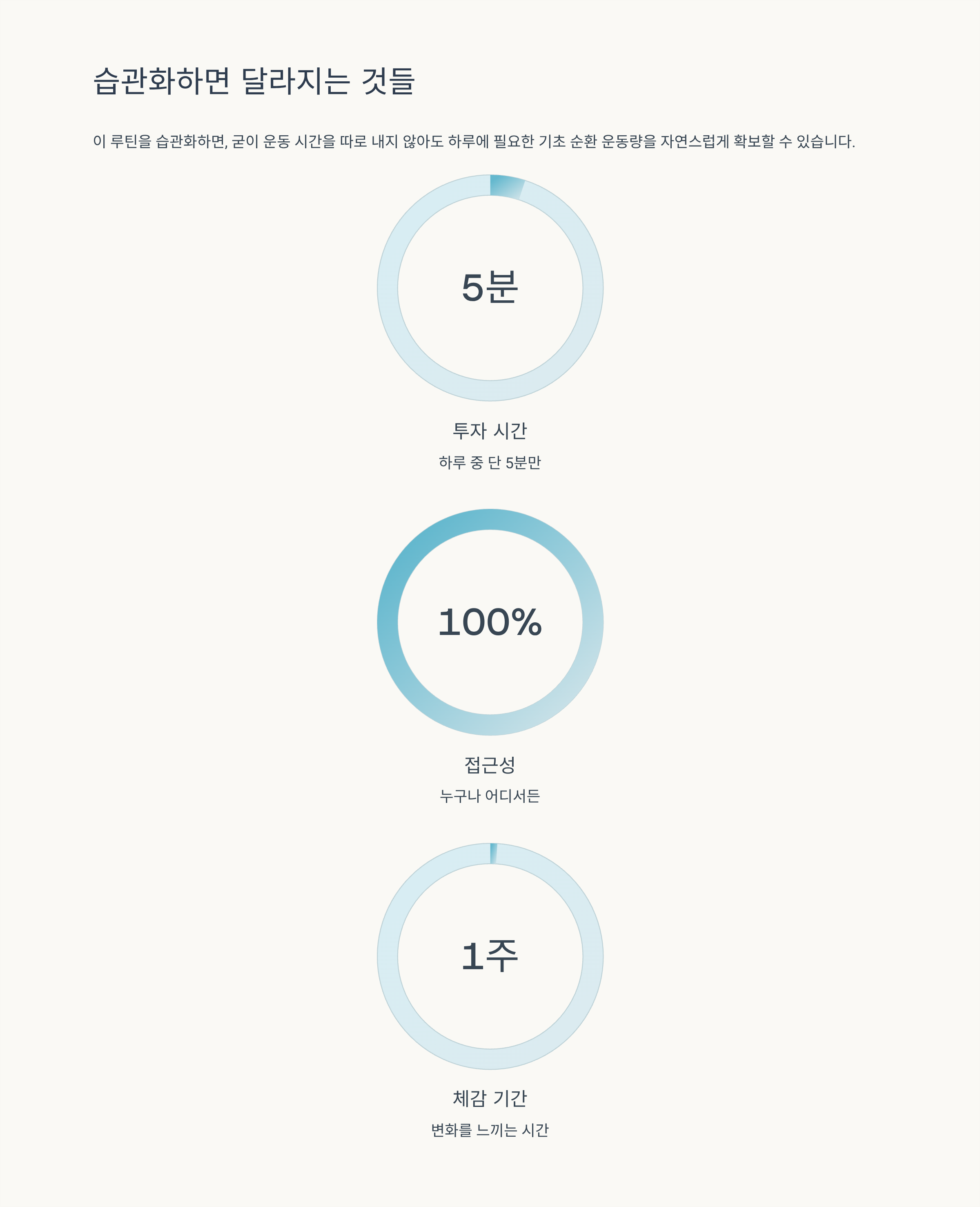이 루틴을 습관화하면, 굳이 운동 시간을 따로 내지 않아도 하루에 필요한 ‘기초 순환 운동량’을 자연스럽게 확보할 수 있습니다.