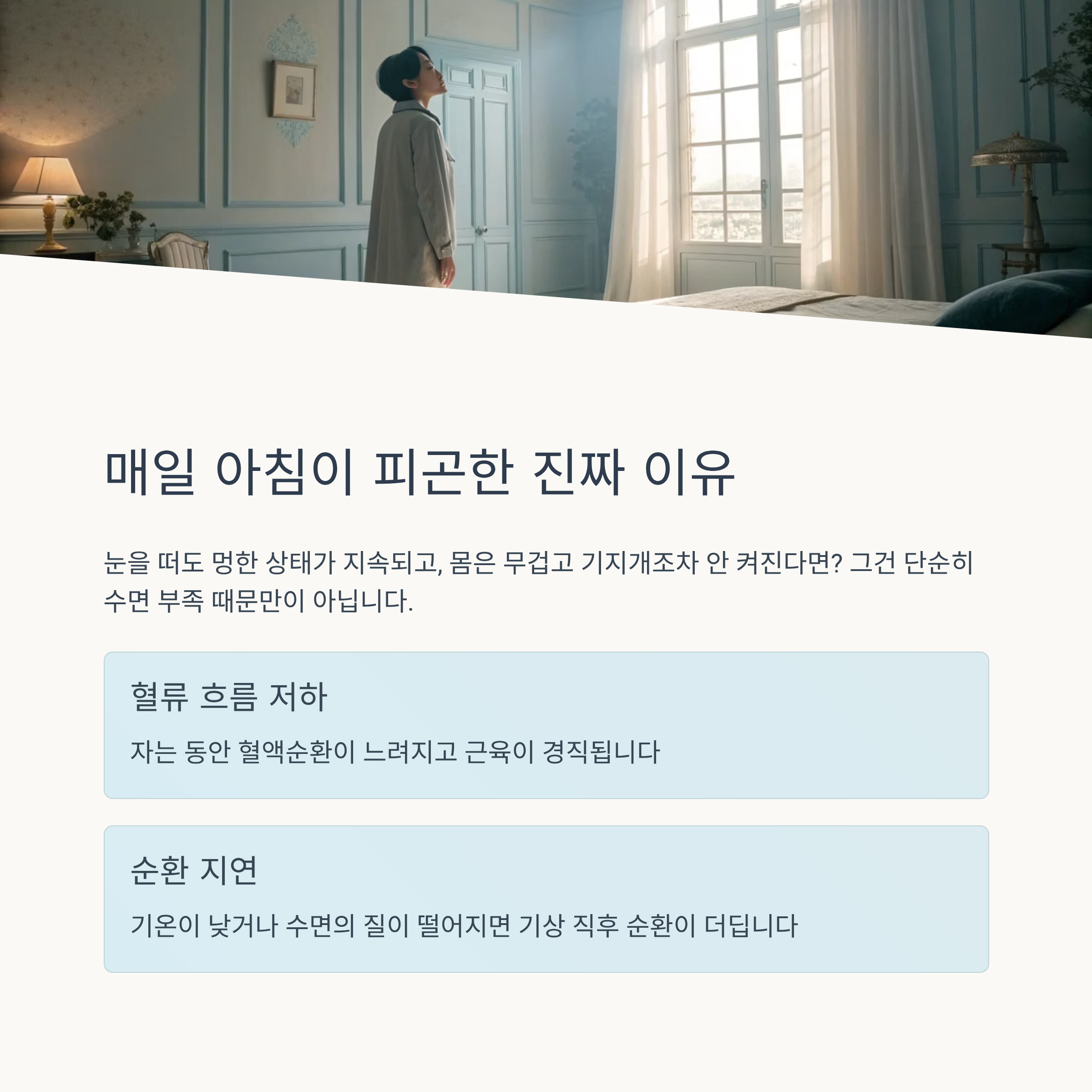 눈을 떠도 멍한 상태가 지속되고, 몸은 무겁고 기지개조차 안 켜진다면 그건 단순히 ‘수면 부족’ 때문만이 아닐 수도 있습니다. 그럴 때 필요한 건, 바로 아침 스트레칭입니다.