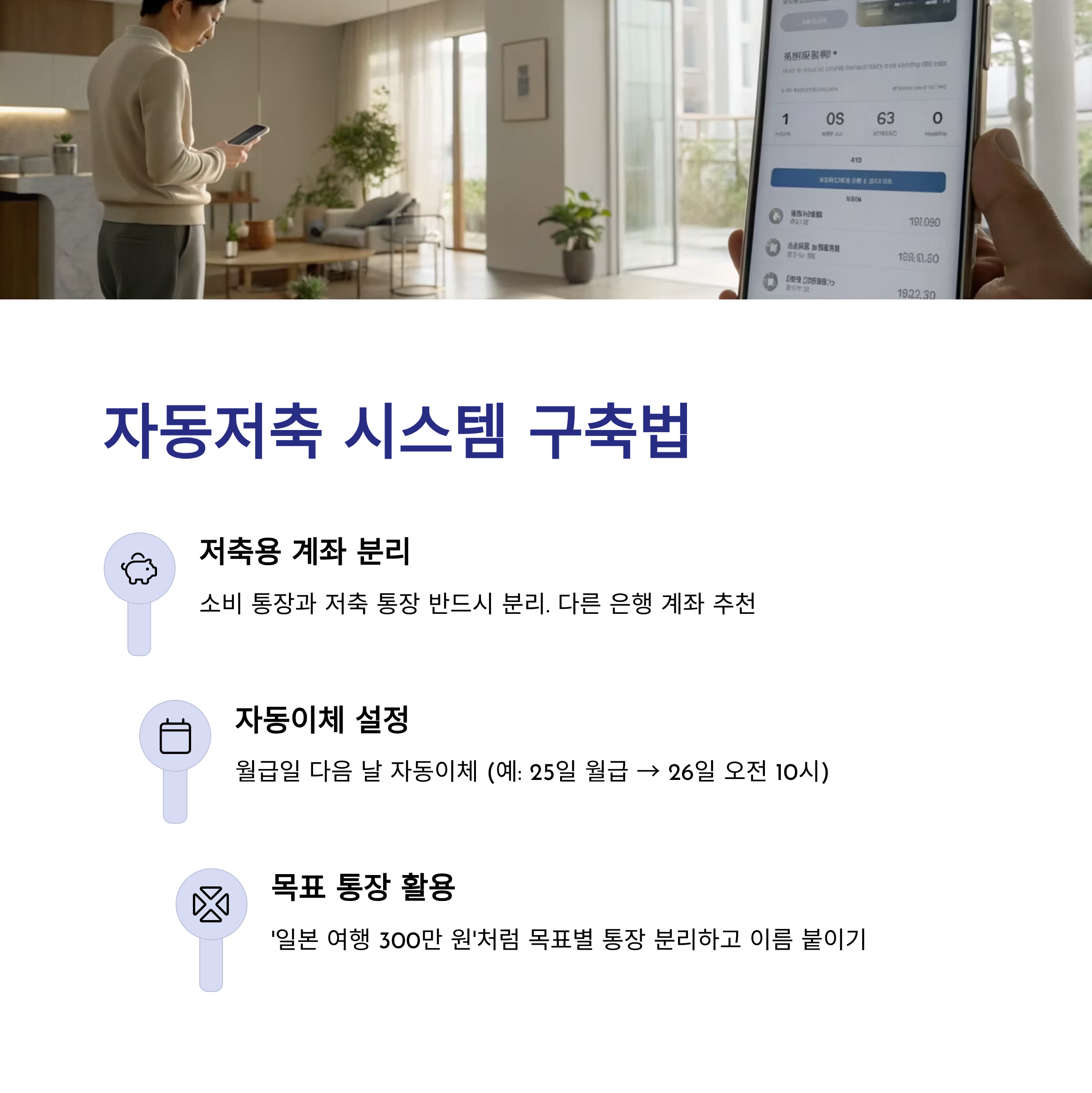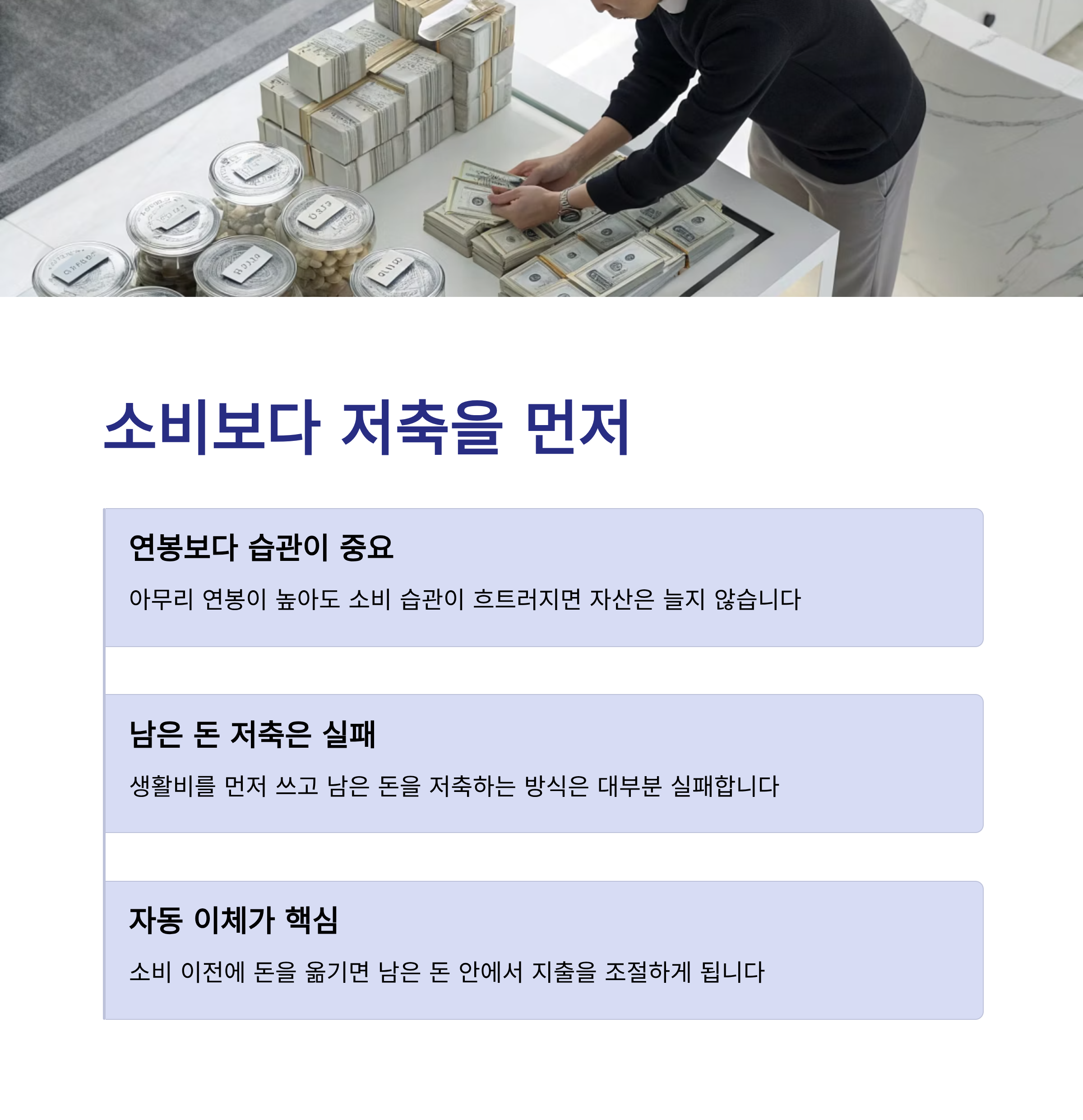 아무리 연봉이 높아도 소비 습관이 흐트러져 있다면 자산은 늘지 않습니다. 생활비를 먼저 써버리고 남은 돈을 저축하려는 방식은 대부분 실패하죠. 반대로, 자동저축 시스템은 소비 이전에 돈을 옮기기 때문에 남은 돈 안에서 지출을 조절할 수밖에 없어요. 이게 핵심입니다.