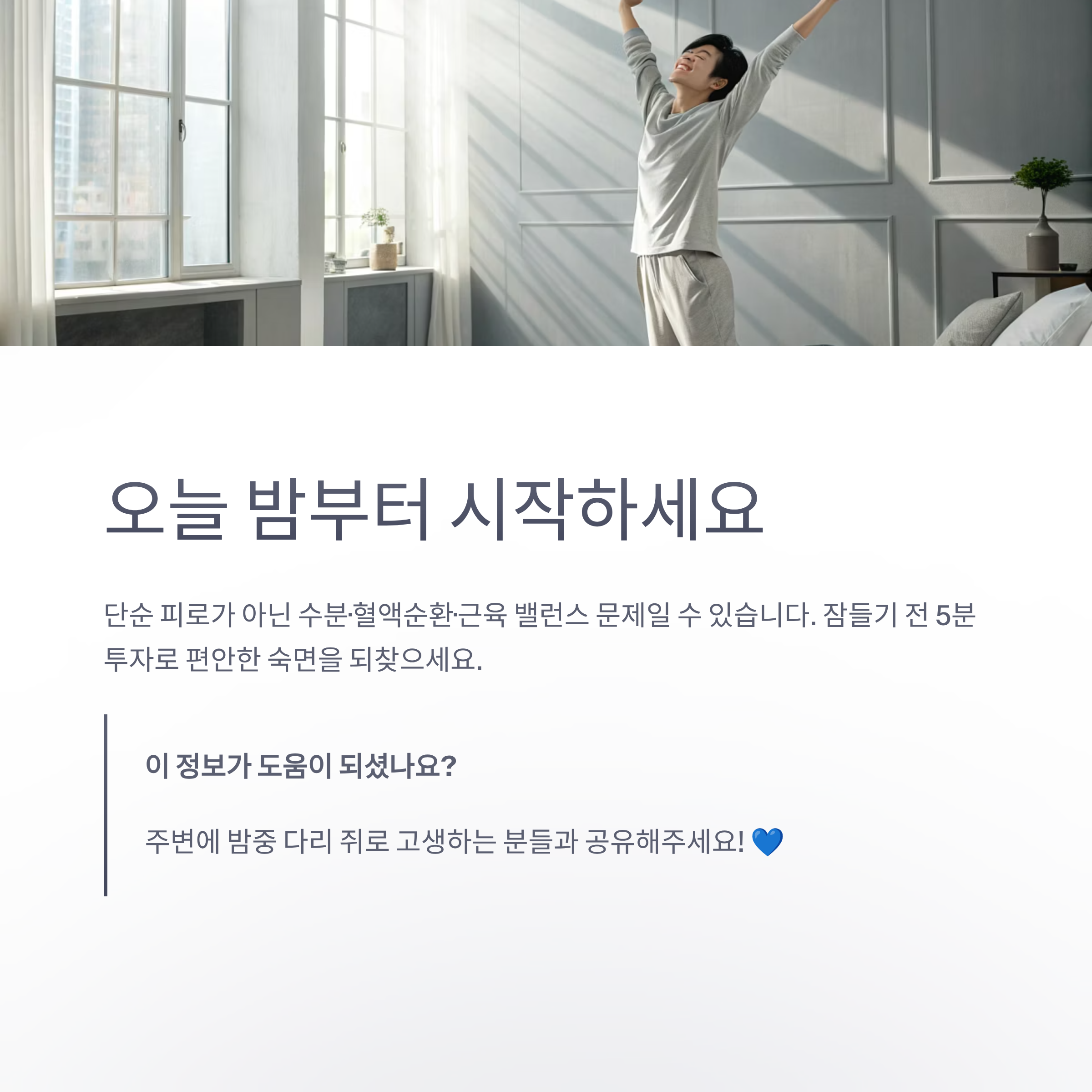 잠들기 전 5분으로 가능한 해결법 3가지를 소개합니다.