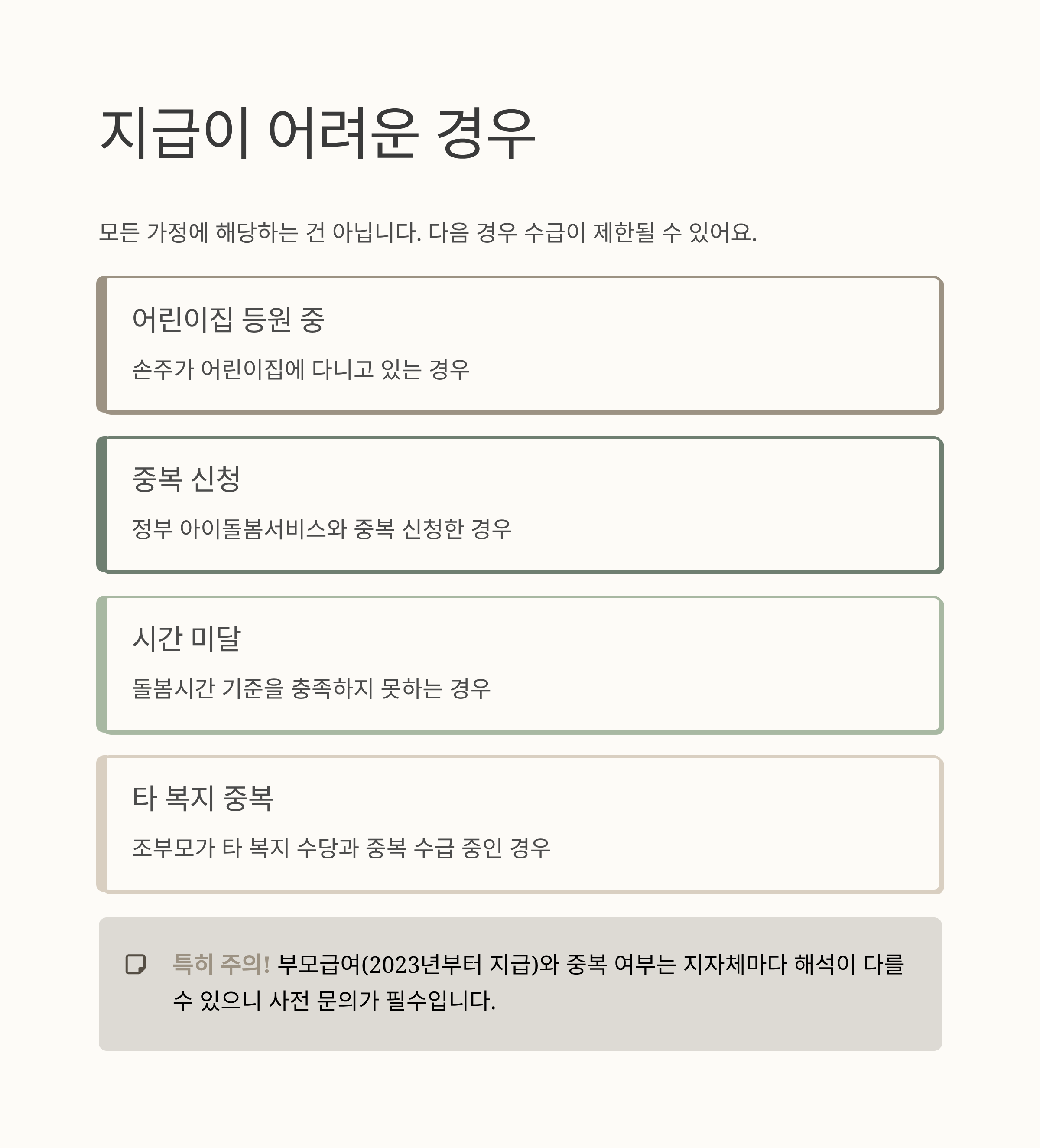 - 조부모가 타 복지 수당과 중복 수급 중일 경우