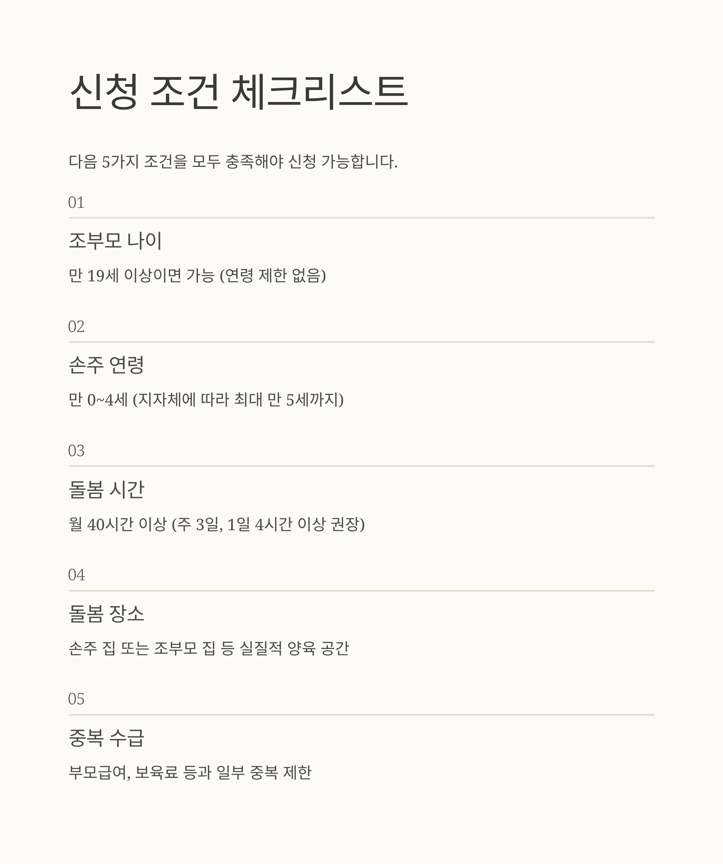 조부모가 ‘손주 돌봄’을 실제로 하고 있어야 한다는 점입니다.