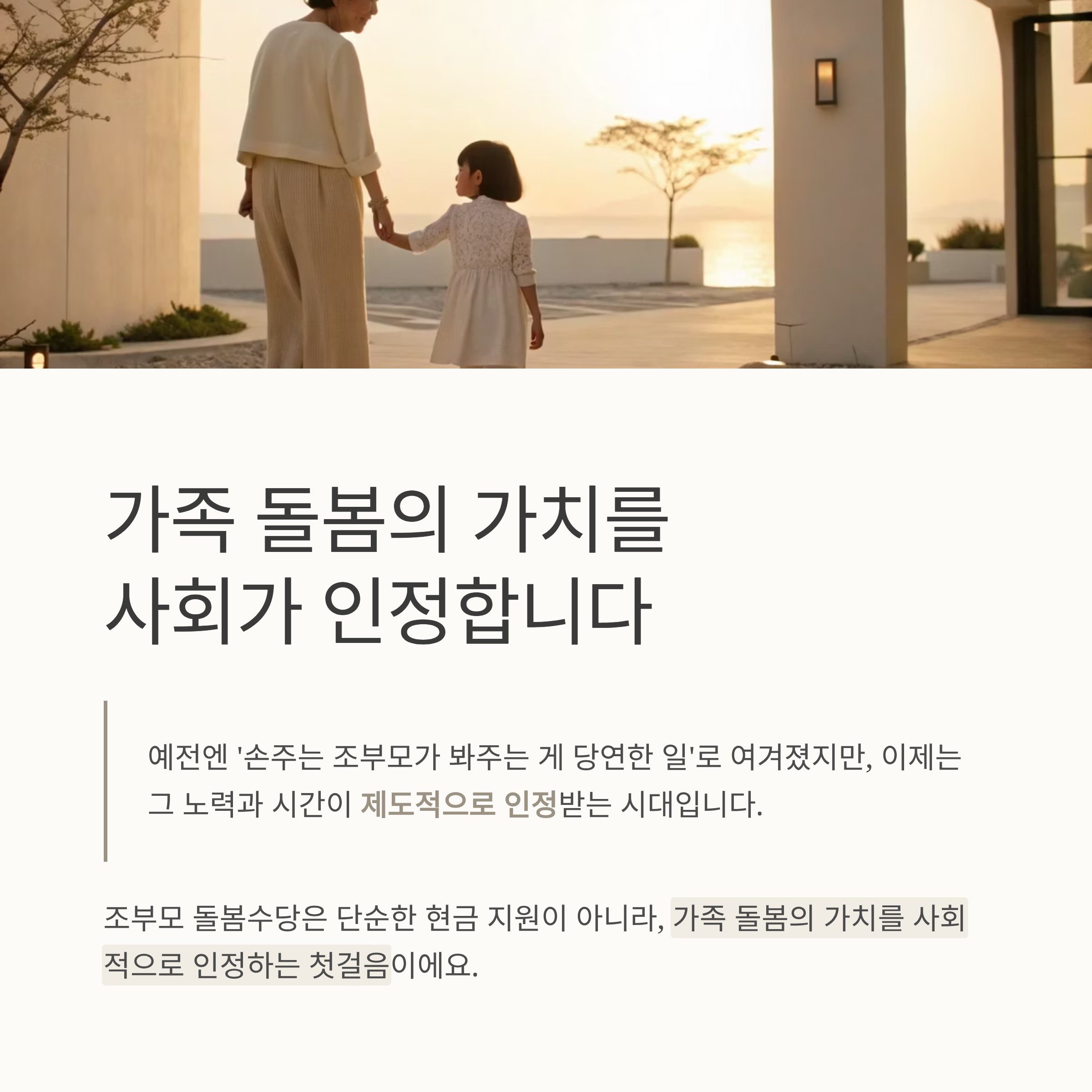 조부모 돌봄수당은 단순한 현금 지원이 아니라,