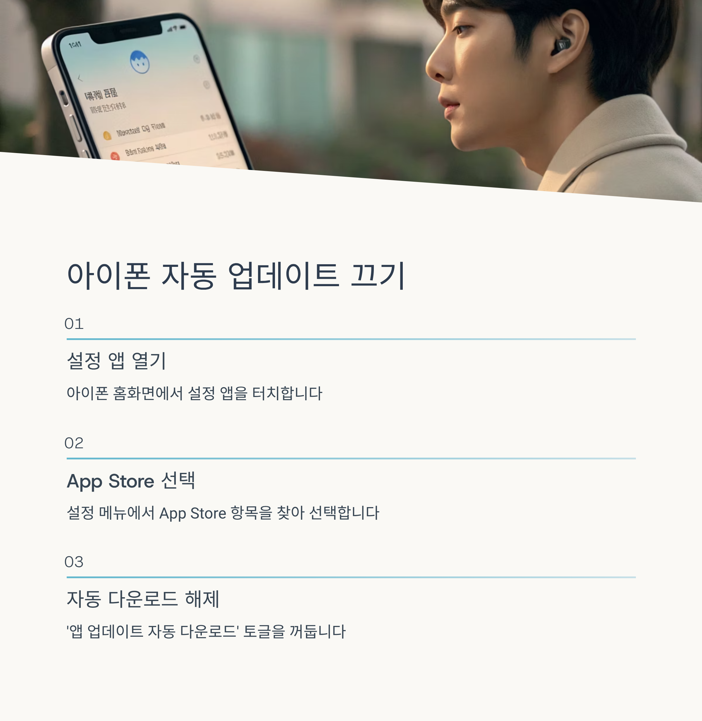 아이폰은 ‘설정’ 앱으로 들어가 ‘App Store’ 항목을 선택합니다. 여기서 ‘앱 업데이트 자동 다운로드’를 꺼두면 카카오톡을 포함한 모든 앱이 수동 업데이트 방식으로 전환됩니다. 필요할 때만 직접 업데이트하면 되므로 불필요한 기능 변화를 막을 수 있습니다.