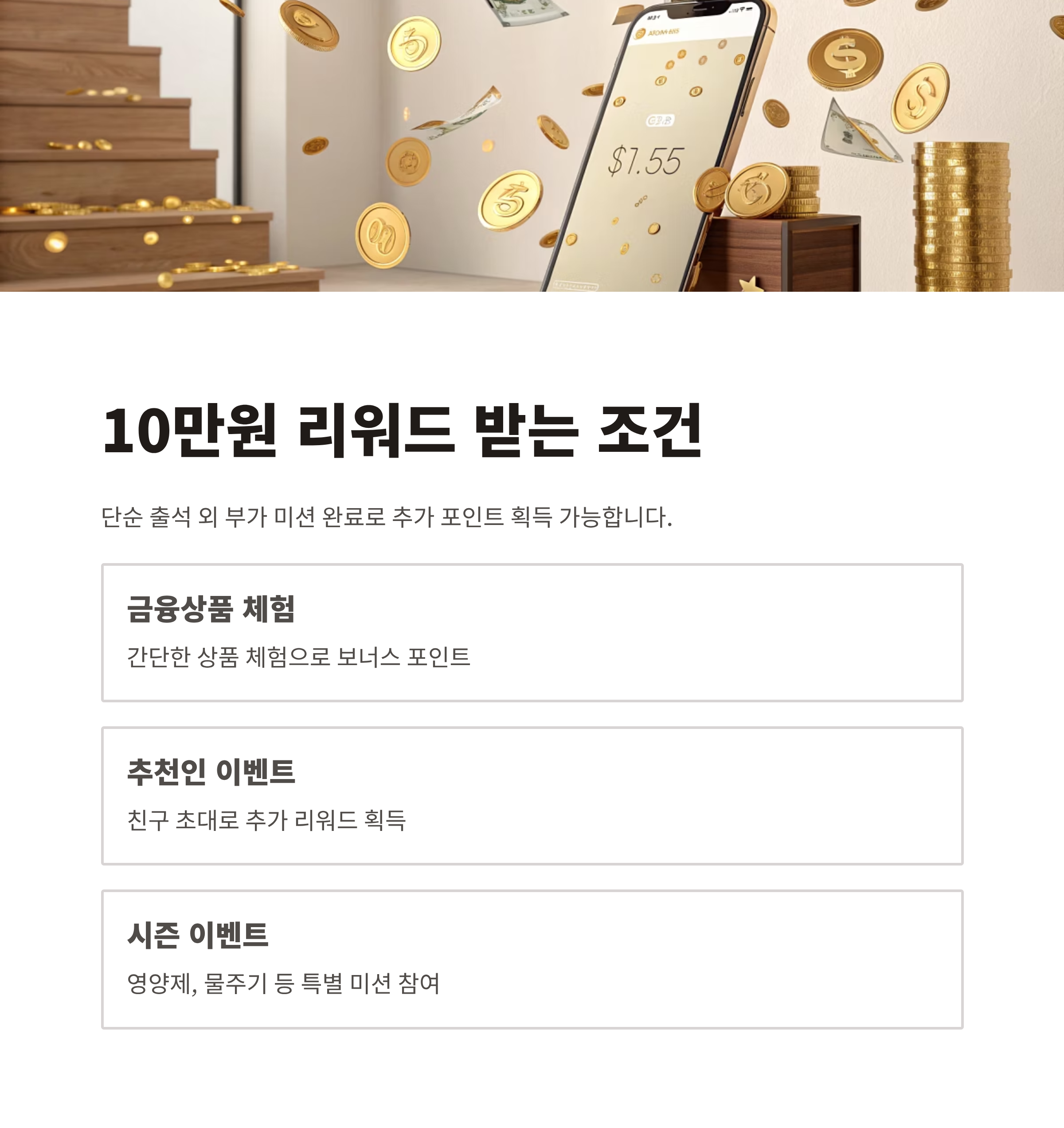 단순한 게임형 인터페이스로 시작하지만, 쌓이는 리워드는 절대 가볍지 않아요.