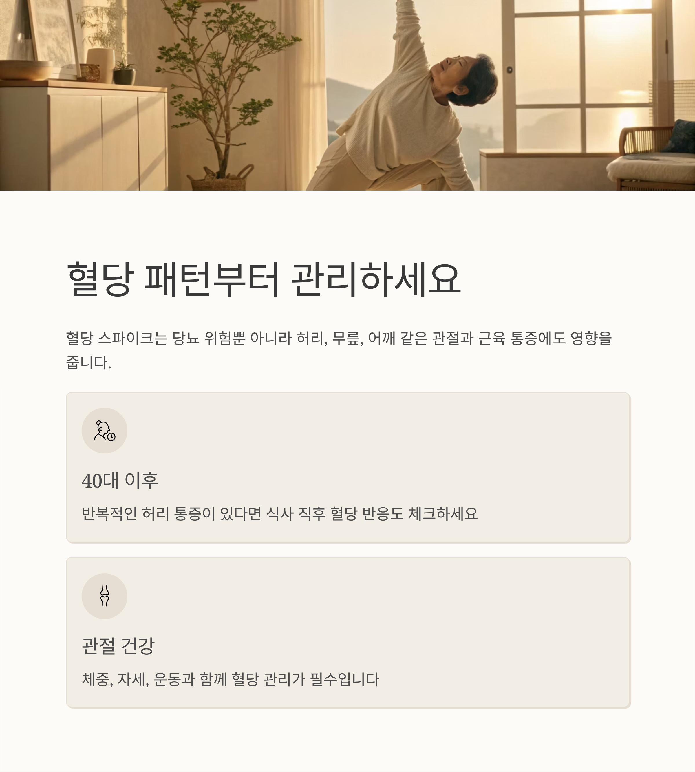 간단한 움직임으로 혈당 분산 + 허리 부담 분산을 동시에 줄이는 겁니다.