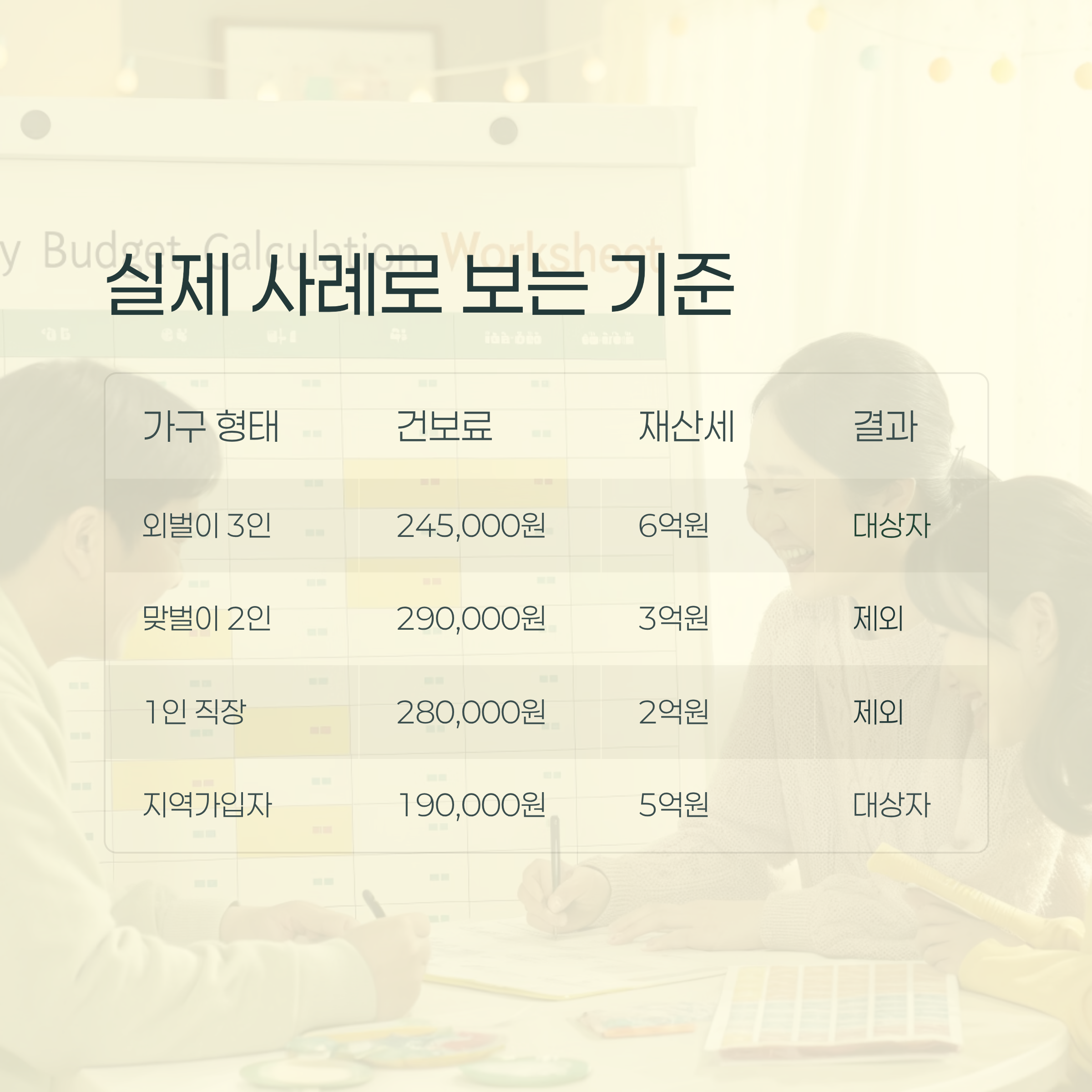 즉, 단순히 본인의 소득만 볼 것이 아니라 가구 전체 납부 보험료를 합산해야 하며,