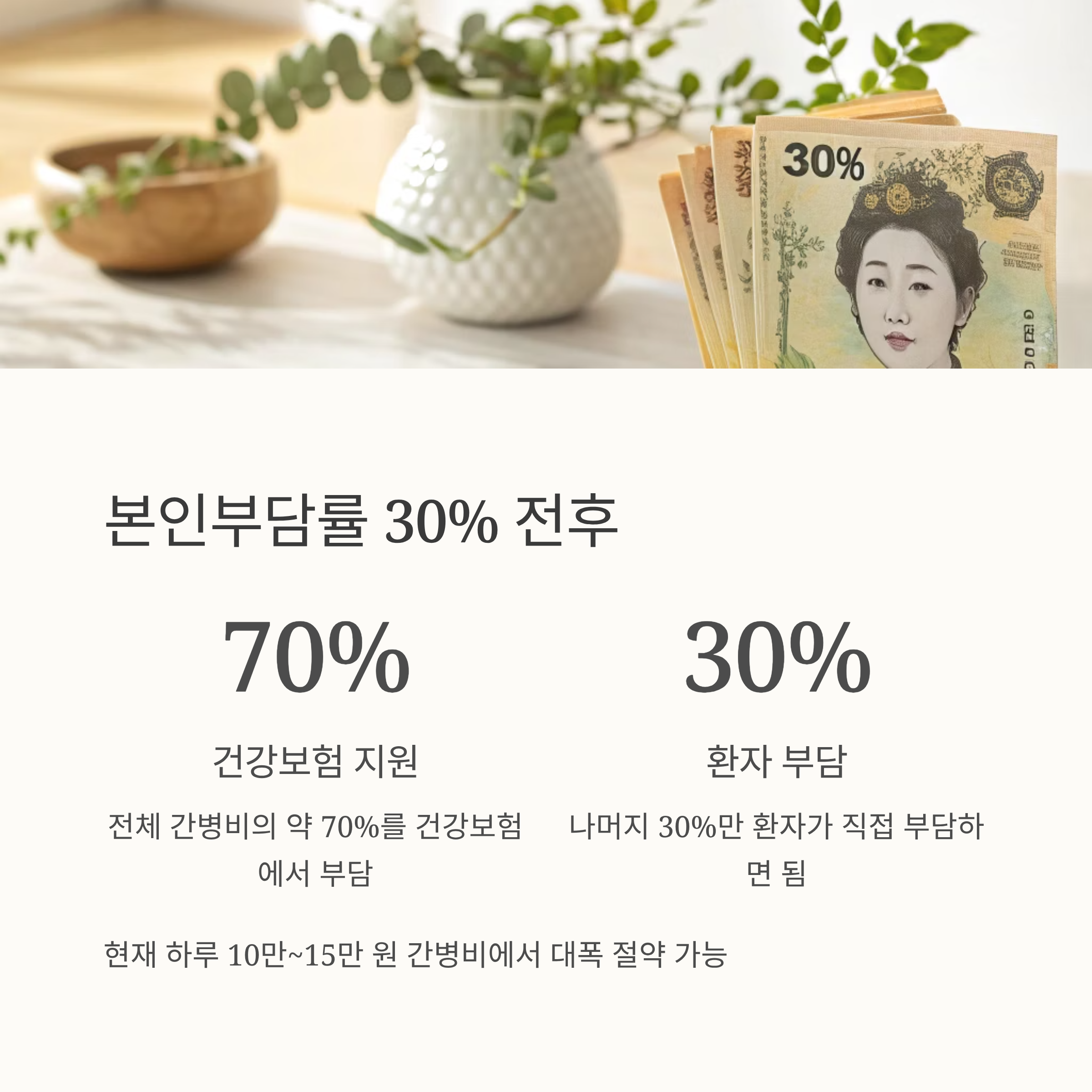 | 본인부담률 | 100% | 약 30% 예상 |