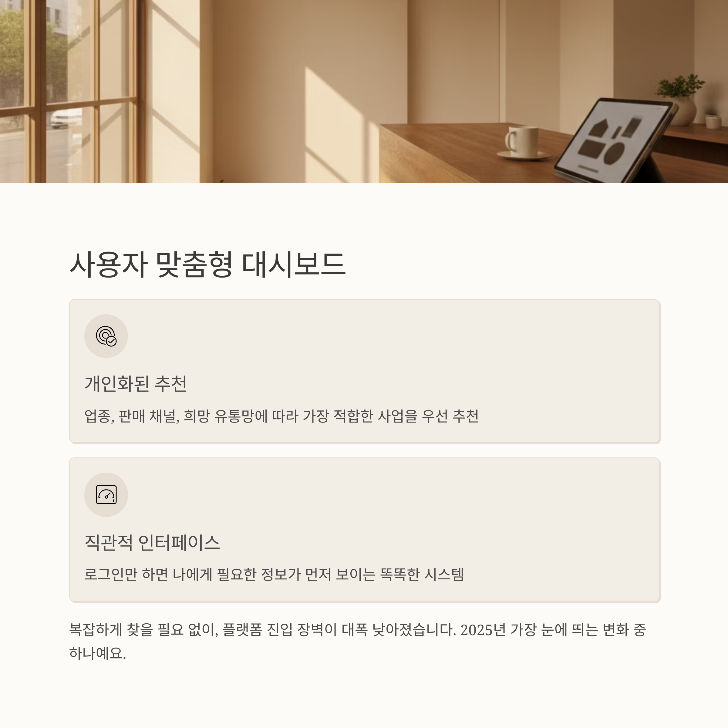 가장 적합한 사업이나 서비스를 먼저 추천해주는 구조로