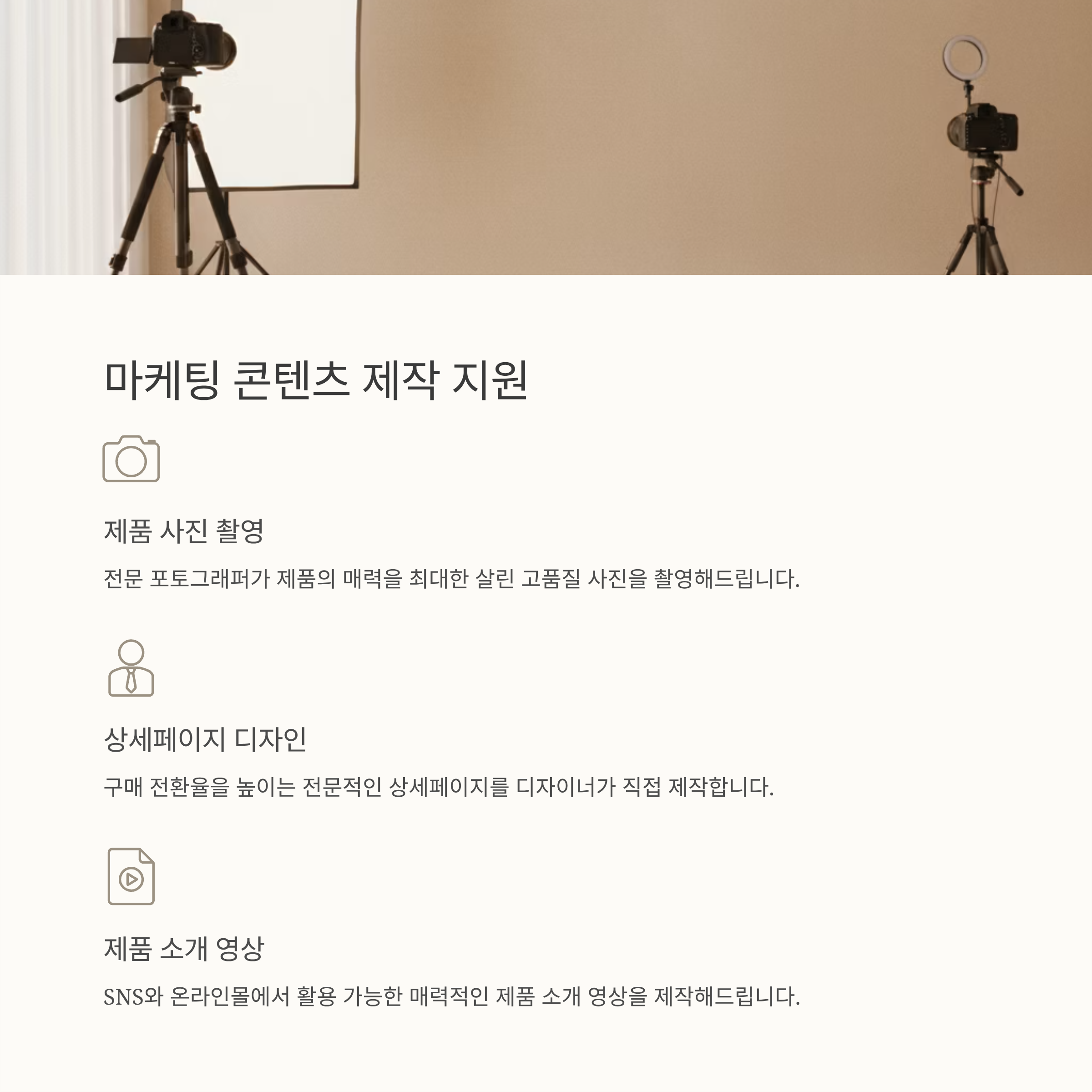 영상부터 상세페이지까지, 마케팅 콘텐츠 제작도 OK