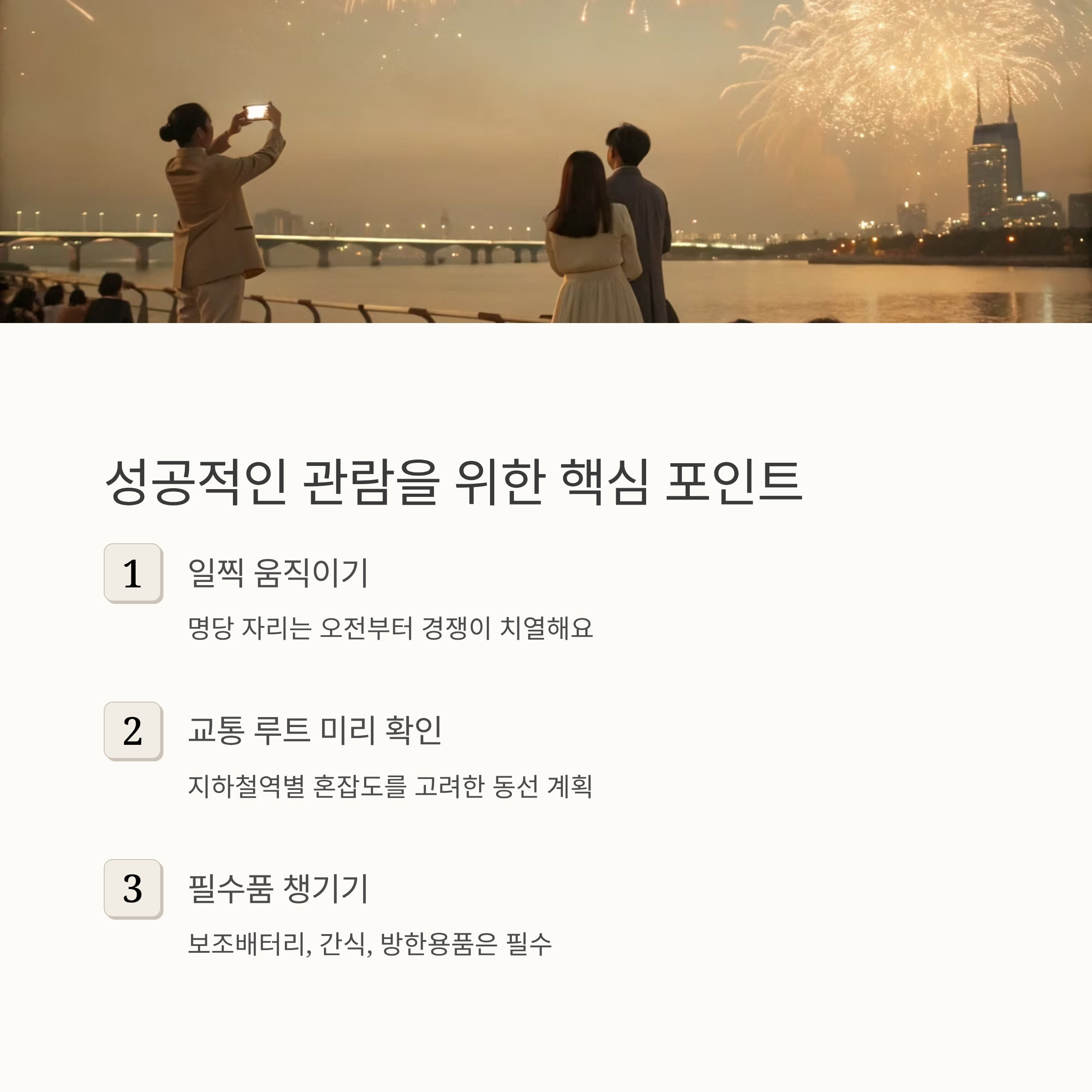이 세 가지만 있어도 불꽃쇼 관람의 질이 달라집니다.