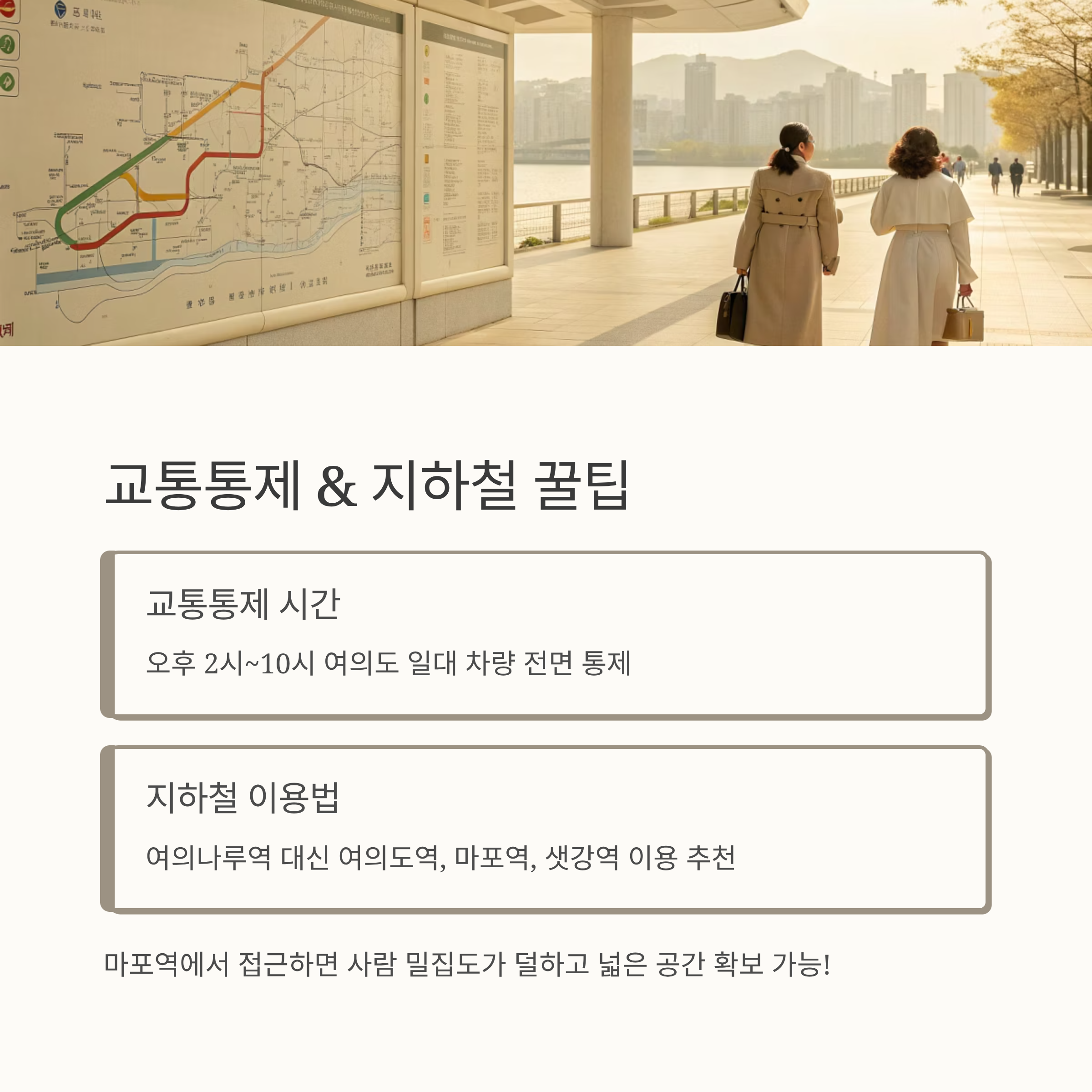 가장 중요한 정보 중 하나는 바로 교통 통제 시간과 지하철 이용 꿀팁입니다.