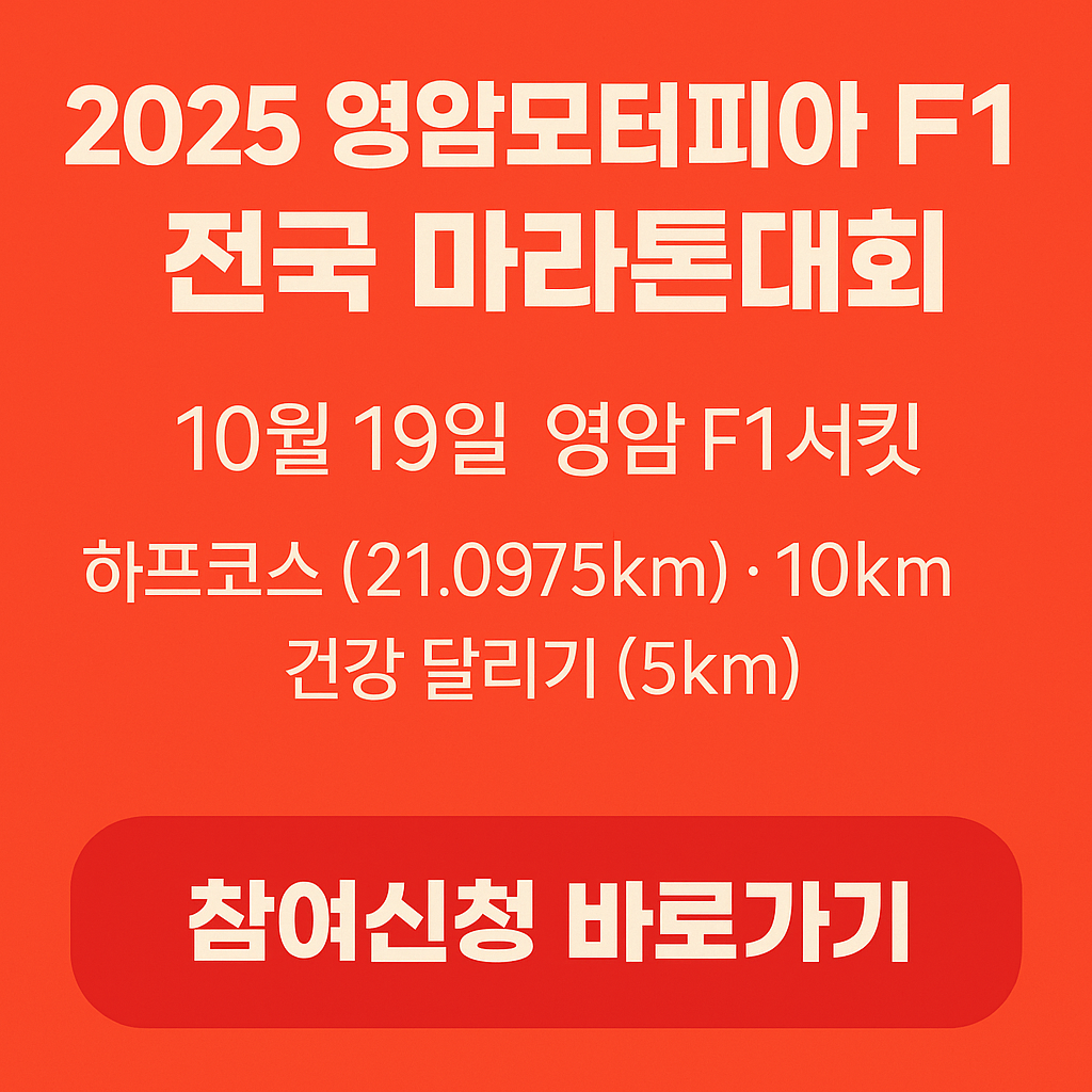 ‘2025 영암모터피아 F1 전국 마라톤대회’가 10월 19일, 전남 영암에서 개최됩니다.
