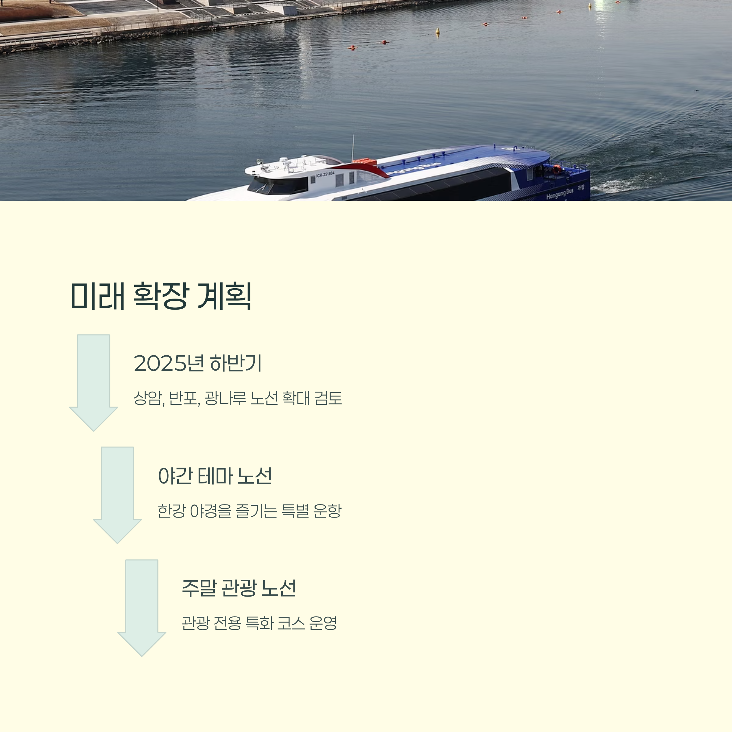 2025년 하반기에는 상암, 반포, 광나루 등지로의 노선 확대도 검토 중이며,