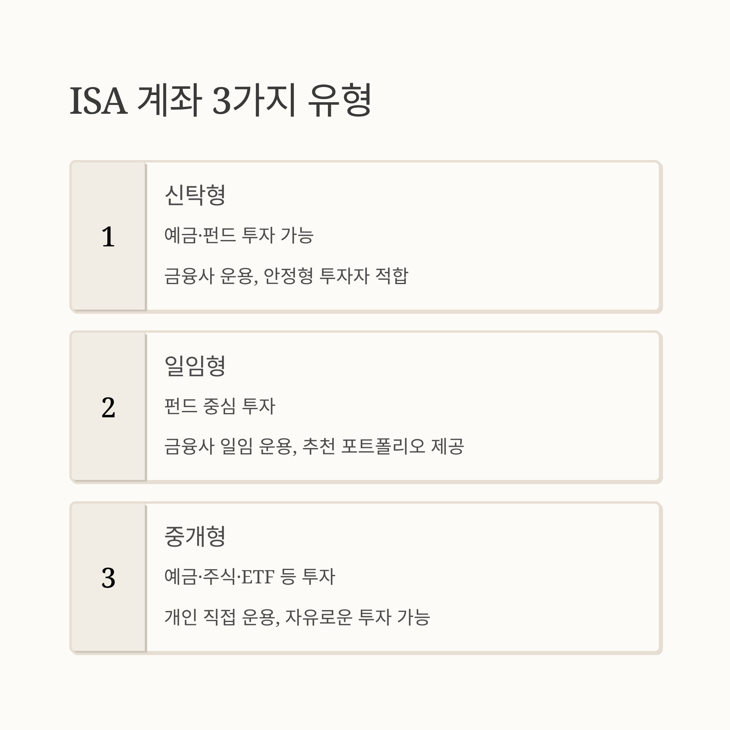 ISA 계좌의 세 가지 유형