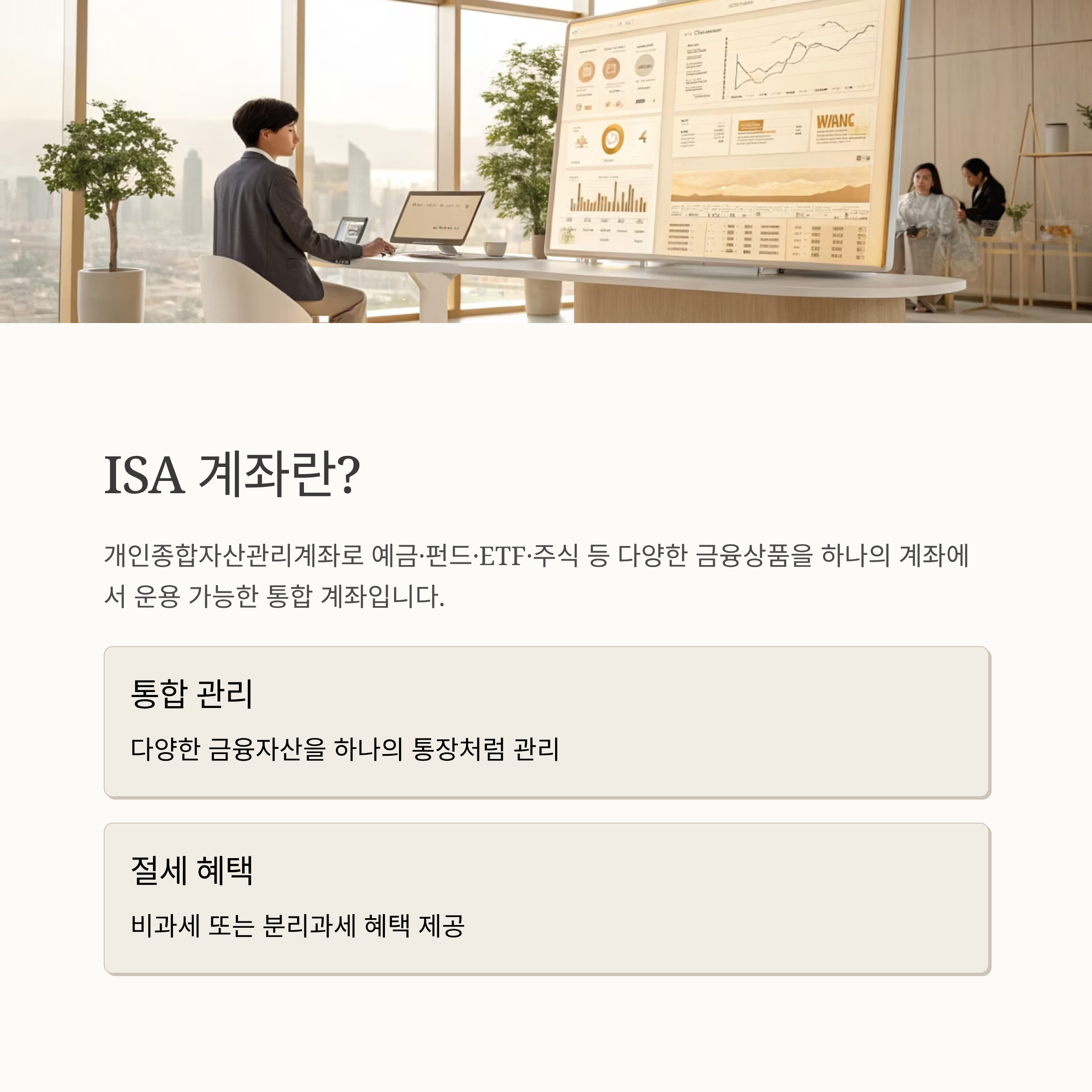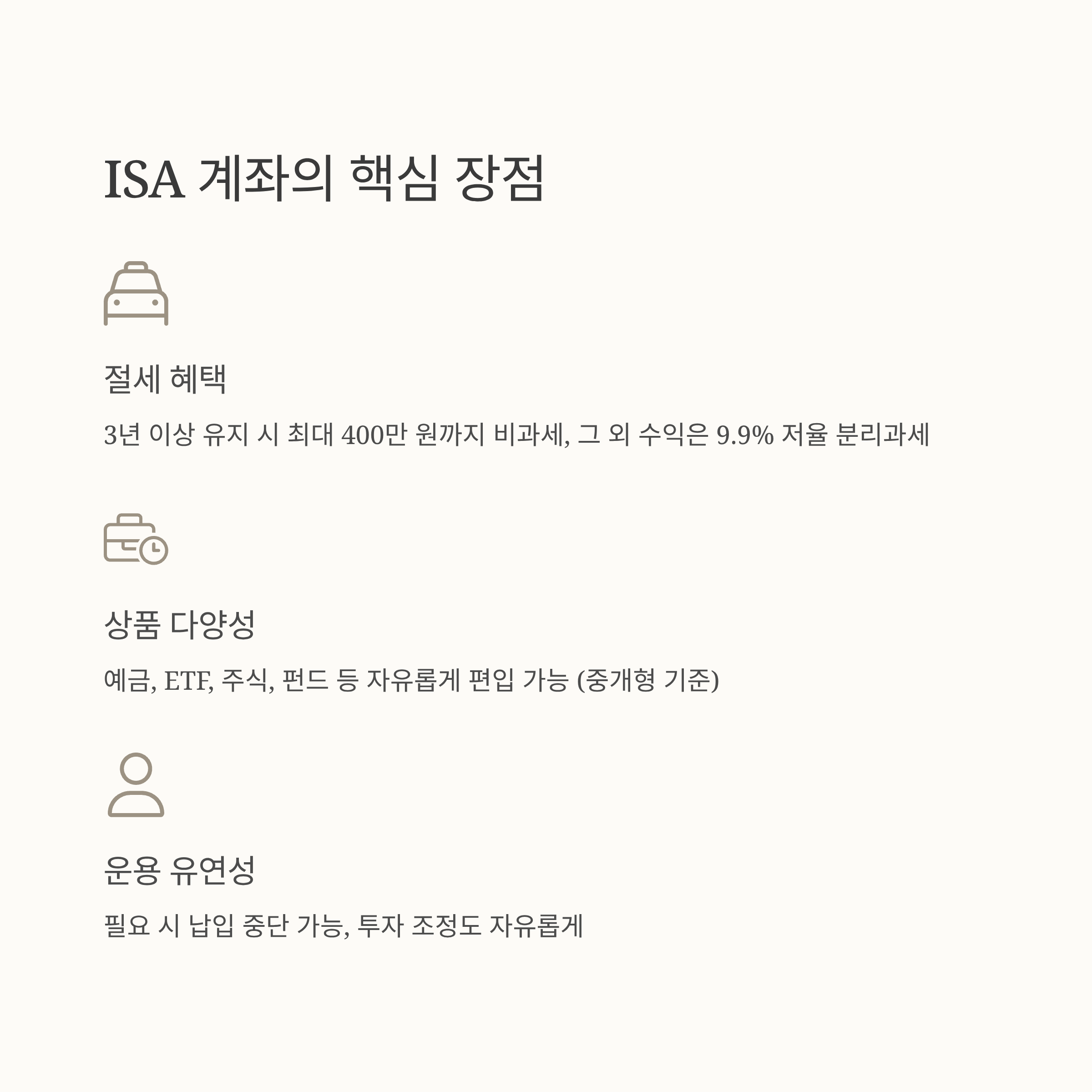 ISA(개인종합자산관리계좌)는 투자와 절세를 동시에 누릴 수 있는 계좌로, 요즘처럼 불확실한 시장 속에서 자산을 분산하고 관리하기 좋은 수단으로 주목받고 있습니다. 이번 글에서는 ISA 계좌의 기본 구조부터 중개형과 신탁형의 차이, 장단점, 실제 투자 활용법까지 깔끔하게 정리해드립니다.