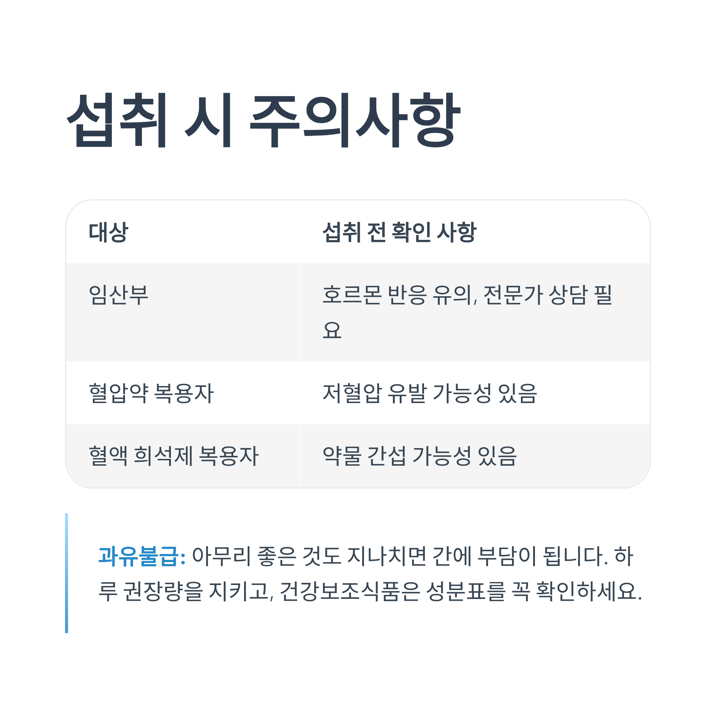 | 대상 | 섭취 전 확인 사항 |