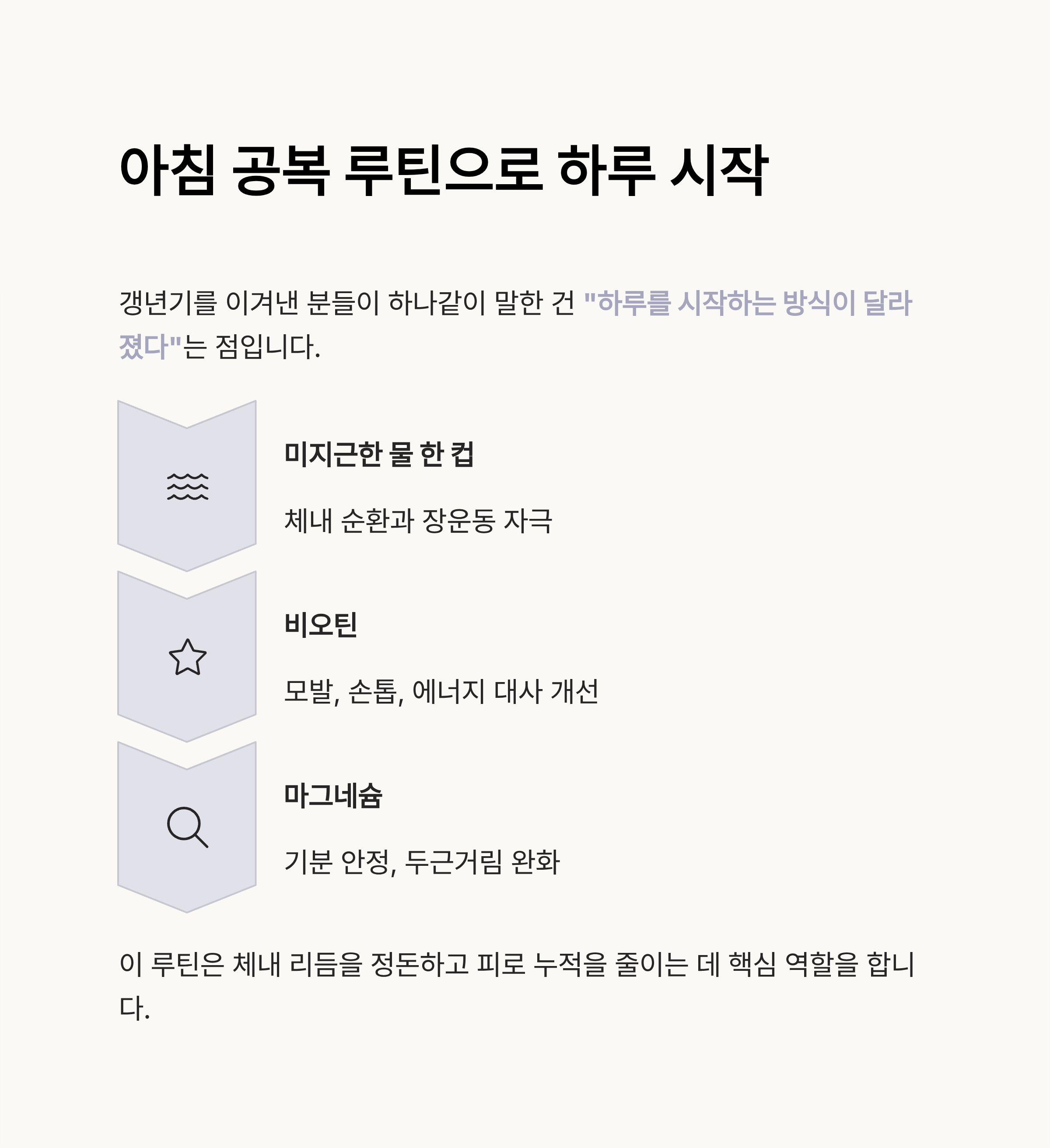 이 루틴은 체내 리듬을 정돈하고 피로 누적을 줄이는 데 핵심 역할을 합니다.