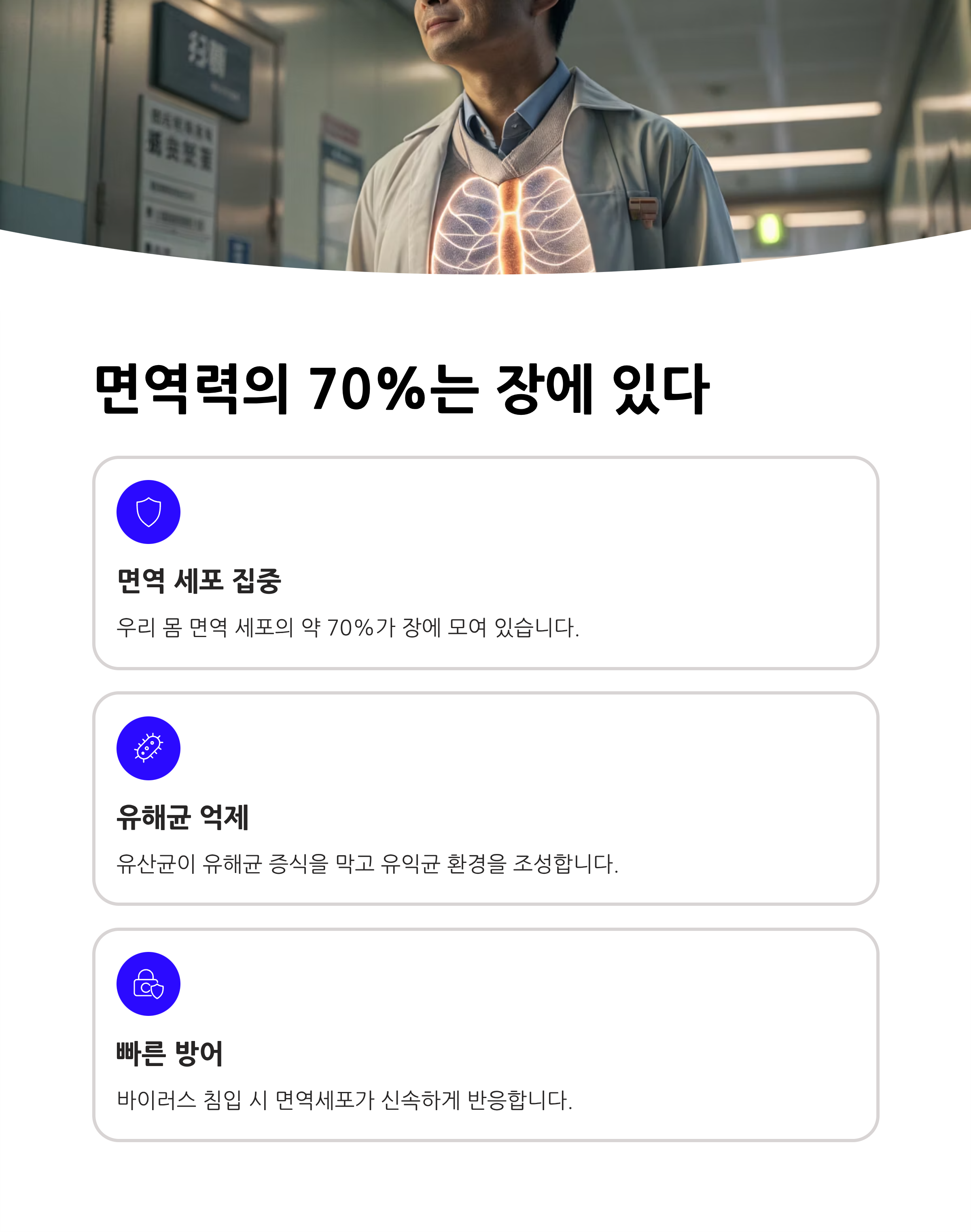 우리 몸 면역 세포의 약 70%가 장에 집중되어 있다는 사실,