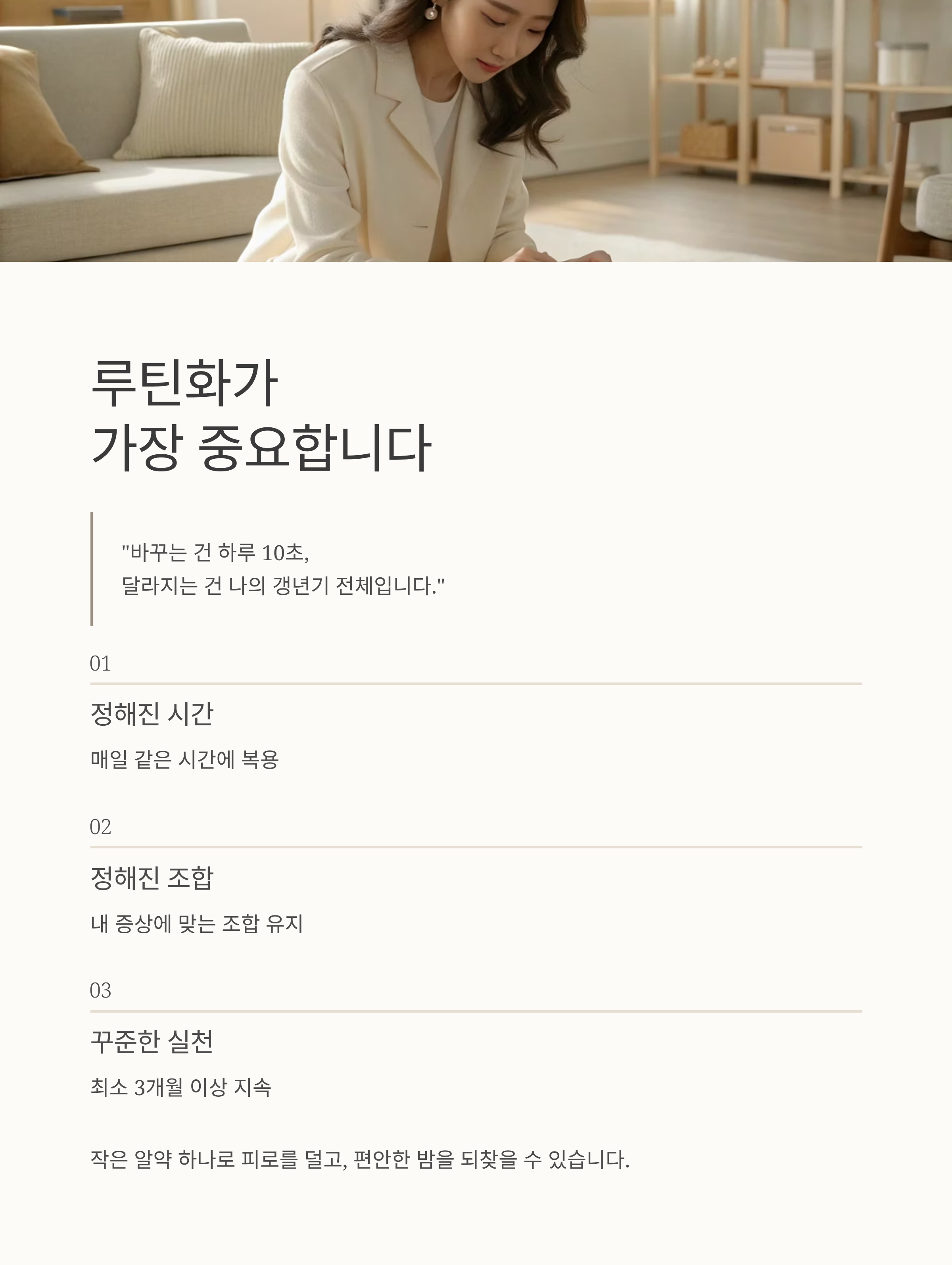 정해진 시간, 정해진 조합으로 매일 챙기는 루틴화가 핵심이죠.
