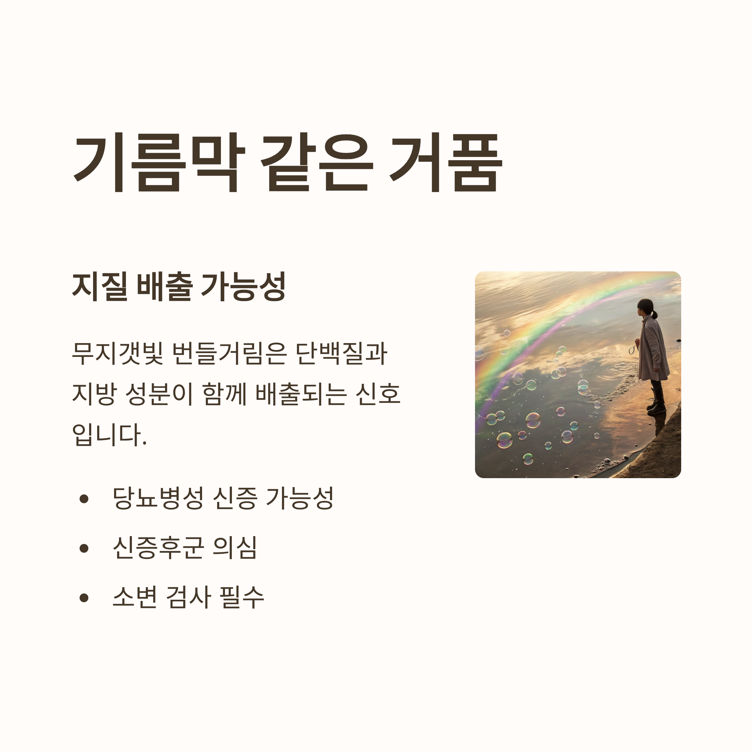| 소변 상태 | 원인 가능성 | 주의 필요성 |
