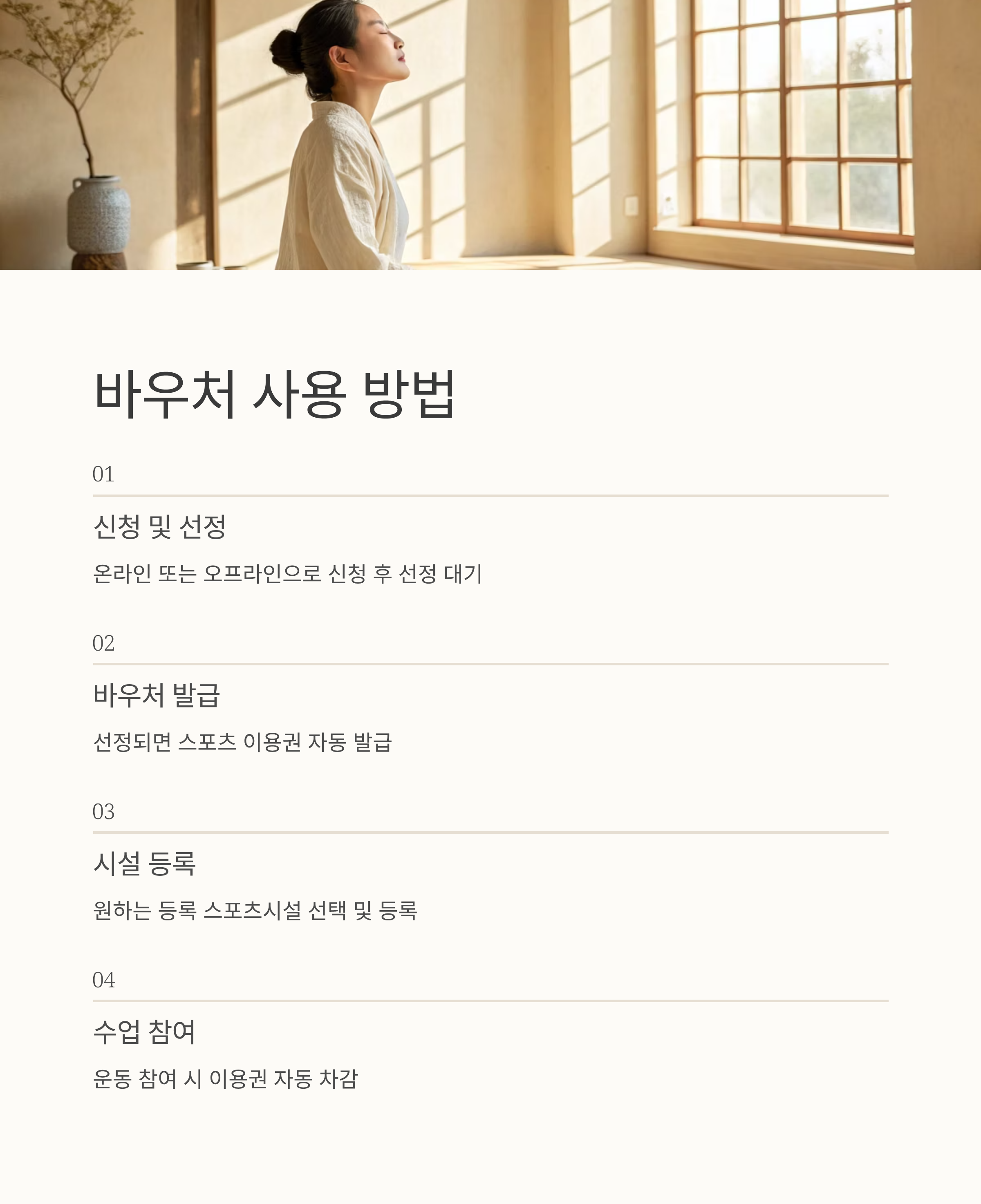 2025년에도 어르신들의 건강한 일상을 위한 스포츠 강좌이용권(바우처) 지원사업이 계속됩니다. 만 65세 이상 어르신이라면 누구나 매달 최대 10만 원까지 지원받아 다양한 운동 프로그램을 부담 없이 이용할 수 있는데요. 이 글에서는 2차 신청 일정부터 누리집 접수 방법, 지원금 사용처까지 전부 정리해드립니다.
