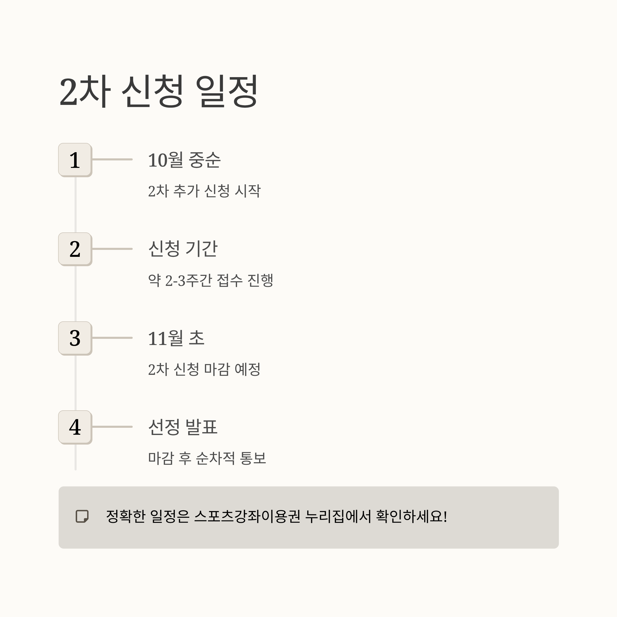 2025년 2차 추가 신청은 10월 중순부터 11월 초까지 진행될 예정이에요.