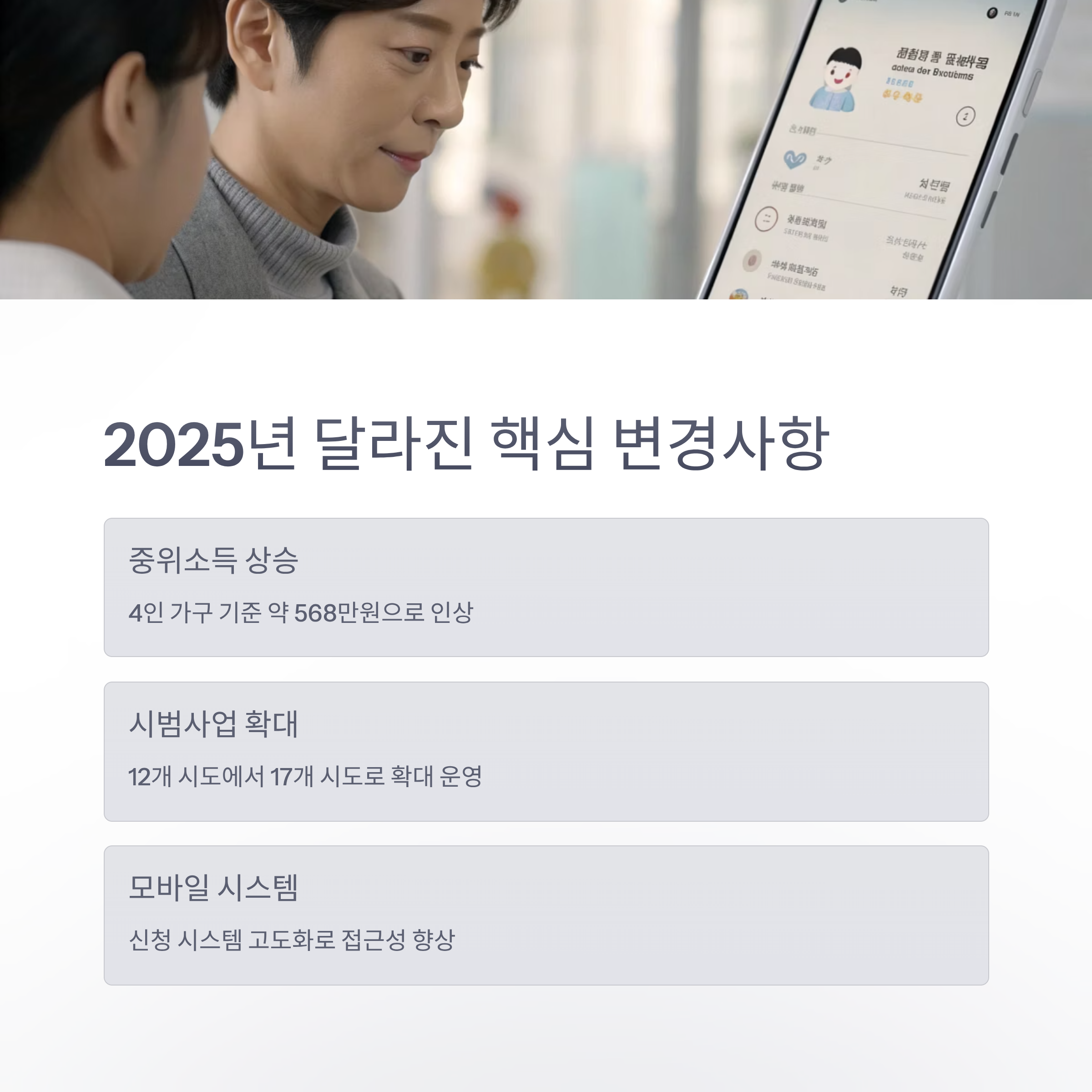 매년 소득기준은 중위소득 변동에 따라 바뀌기 때문에, 과거 기준으로 알고 있으면 놓칠 수 있습니다.