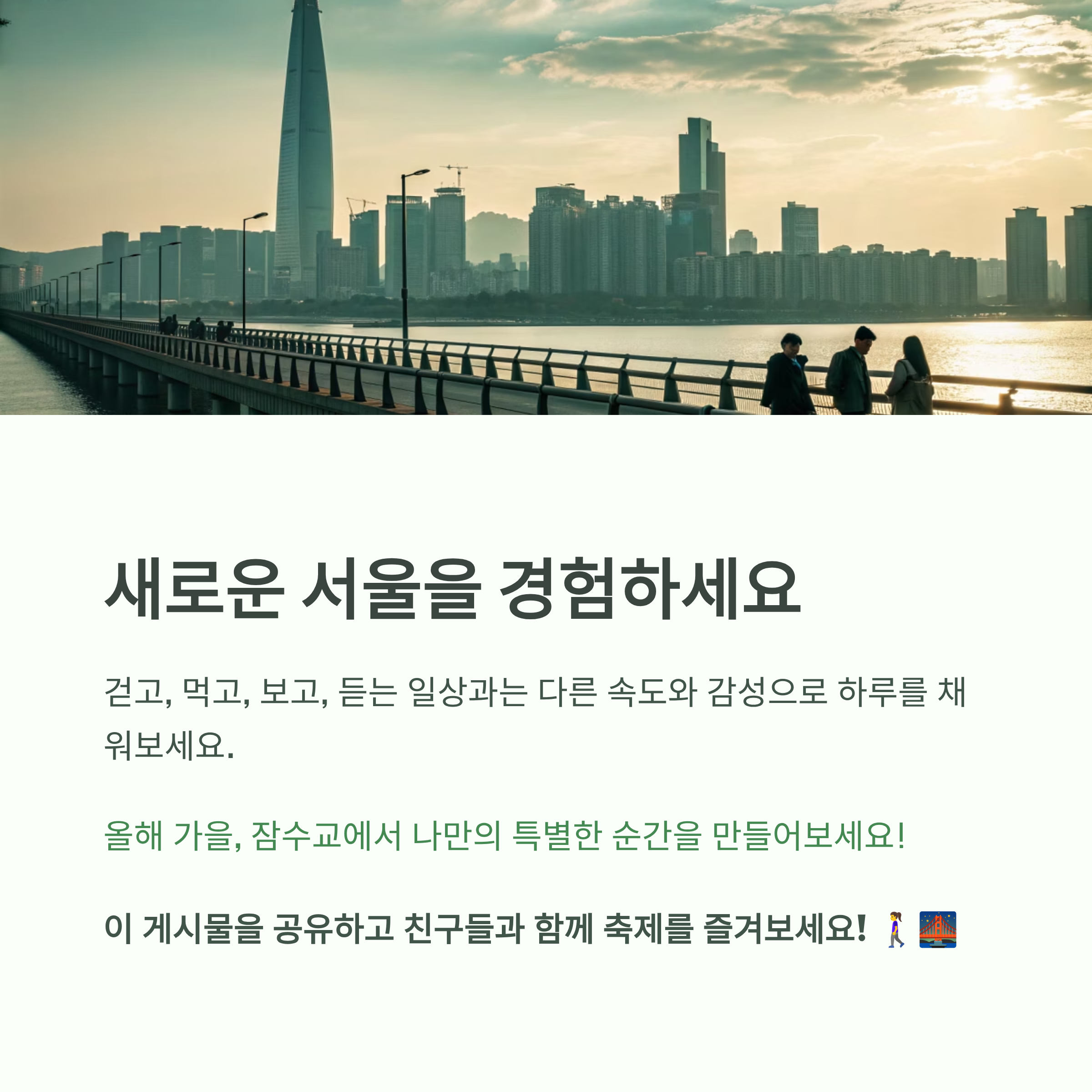올해 가을, 잠수교에서 새로운 서울을 경험해보세요.