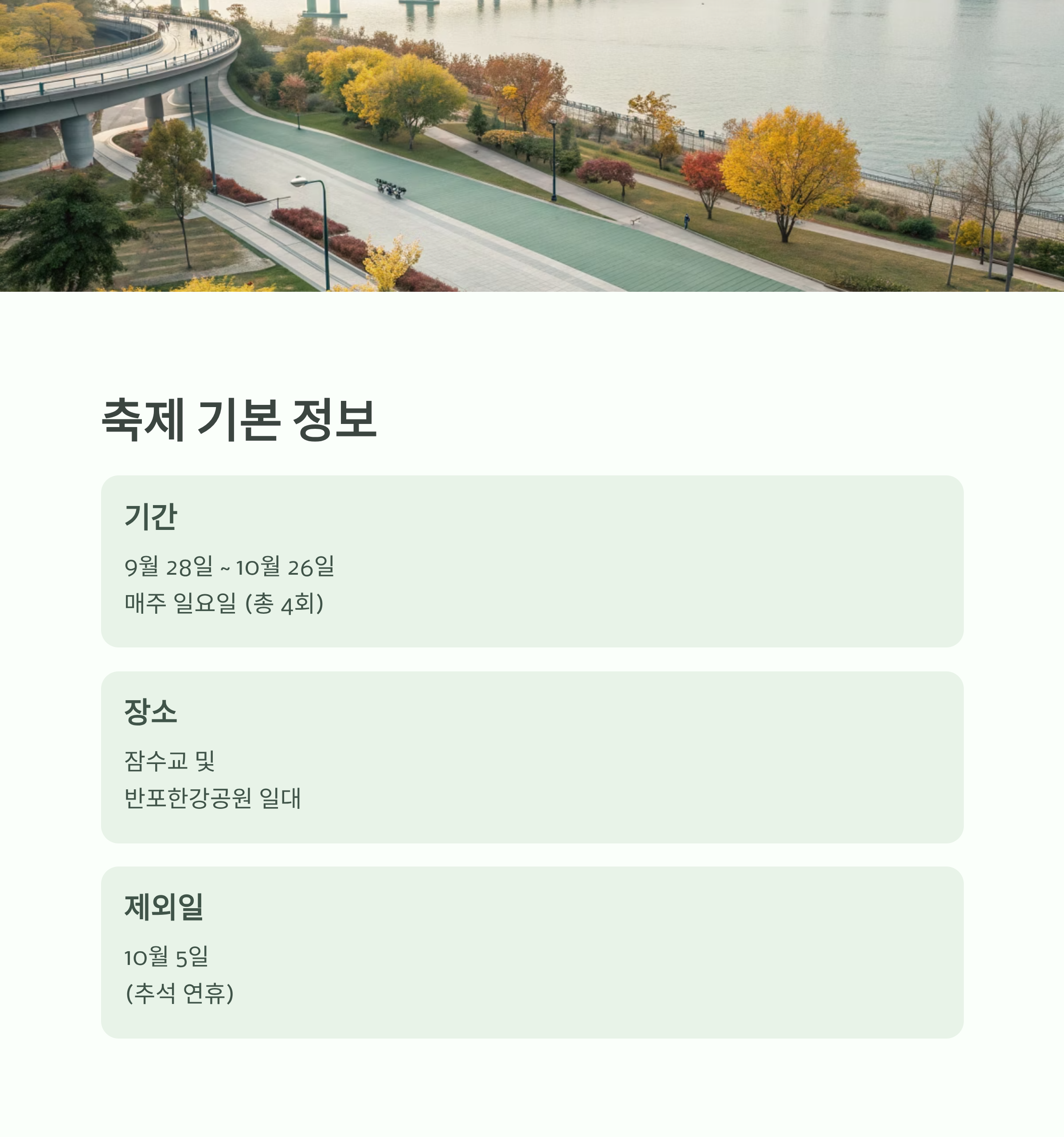 2025년 9월 28일부터 10월 26일까지, 단 하루의 이벤트가 아닌 5주간 연속 축제로 돌아온 ‘잠수교 뚜벅뚜벅 축제’.