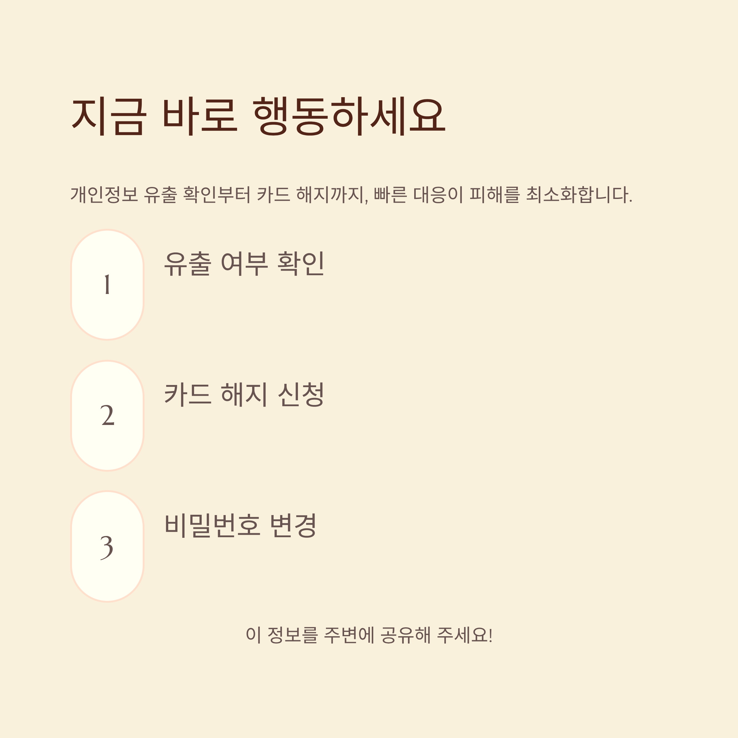 개인정보 유출이 확인되었다면 신속히 해당 카드를 해지하고 새로 발급받는 것이 안전합니다. 해지는 홈페이지와 고객센터를 통해 신청할 수 있으며, 재발급 시 기존 카드 사용은 즉시 중단되고 새로운 카드가 발급됩니다.
