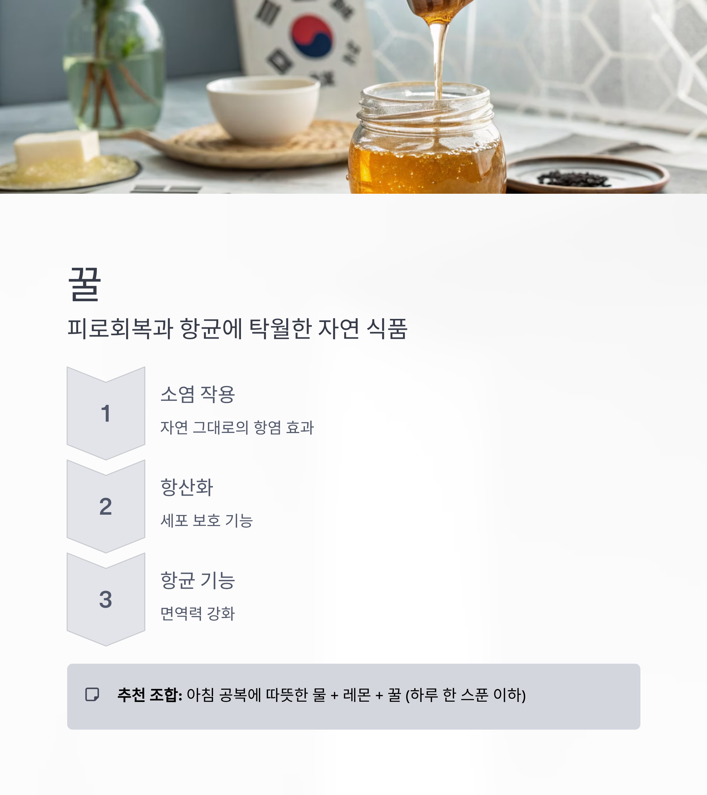 | 추천 조합 | 식재료 효과 | 섭취 팁 |
