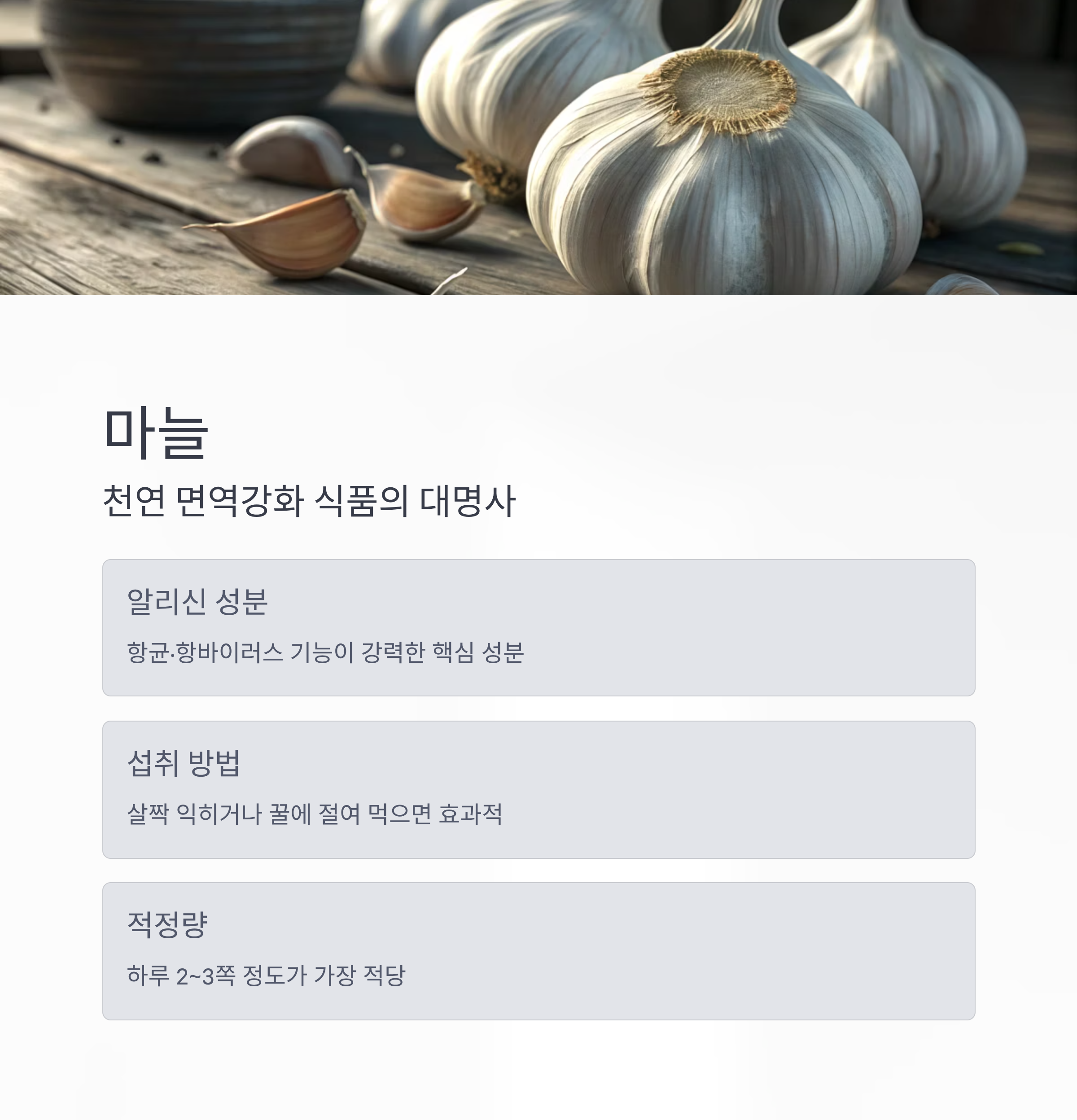 1. 마늘 – 천연 면역강화 식품의 대명사