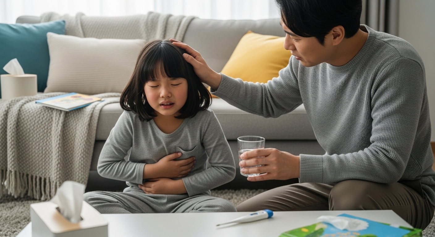 기침, 콧물 등 호흡기 증상이 주요하며, 소아의 경우 아래와 같은 소화기 증상이 동반될 수 있어요.